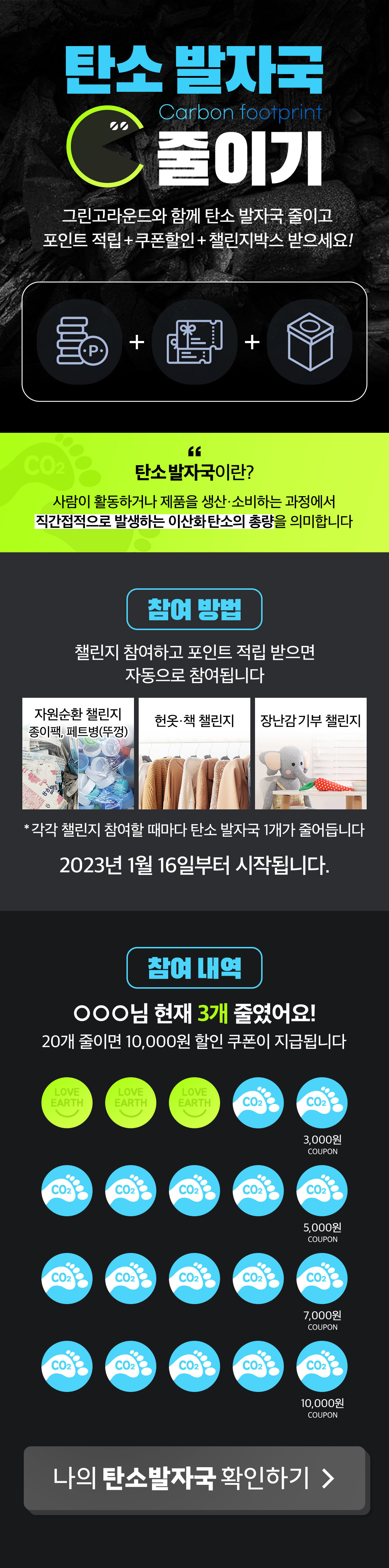 탄소 발자국 줄이고 혜택 받으세요!