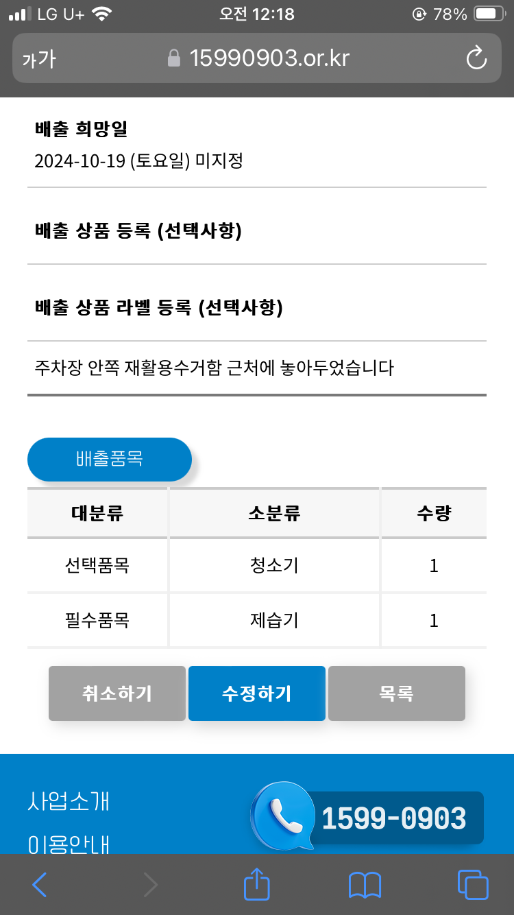 편리한 폐가전 제품 배출 완료!