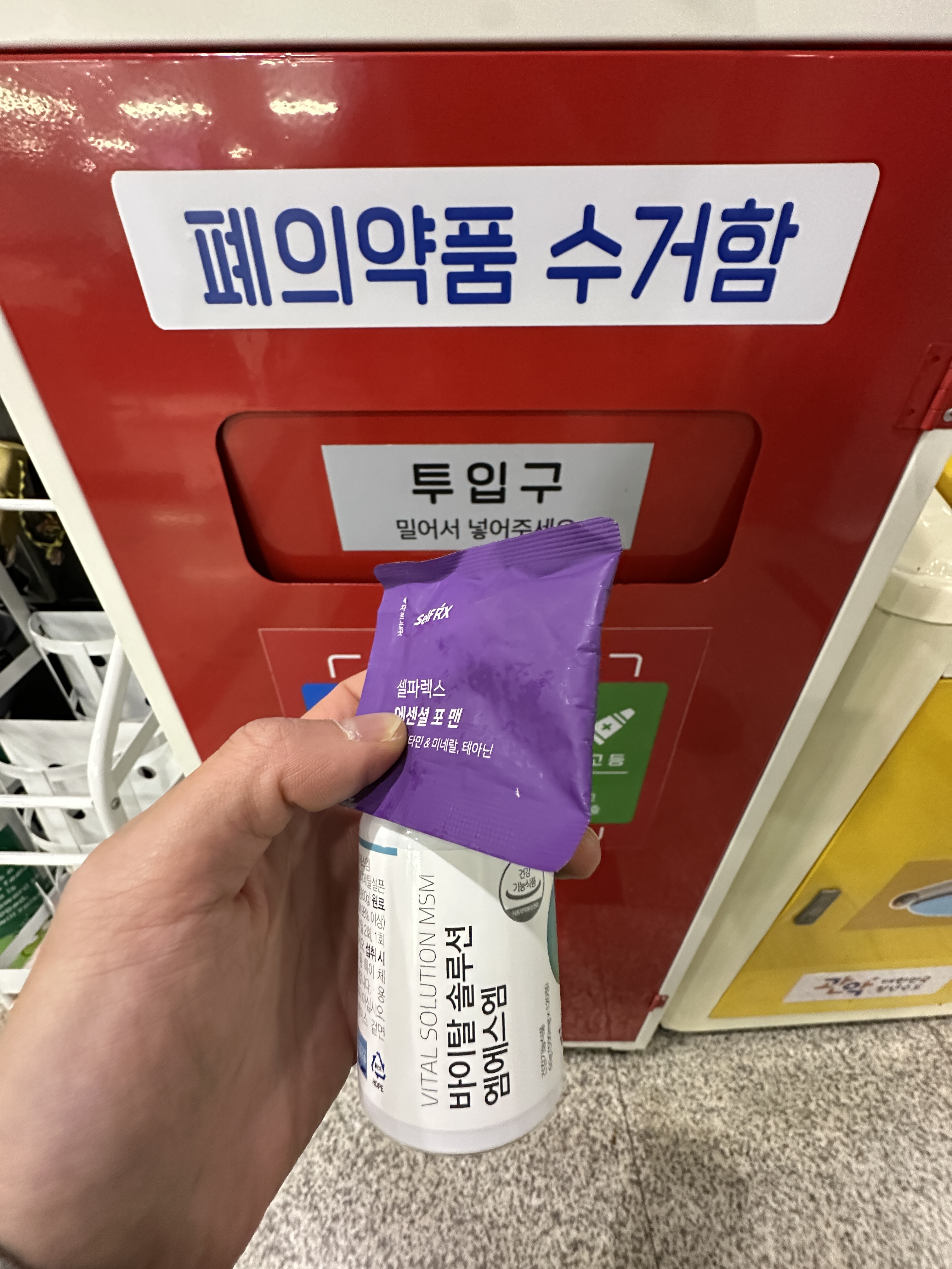방금 주민센터 수거함에 폐의약품 배출