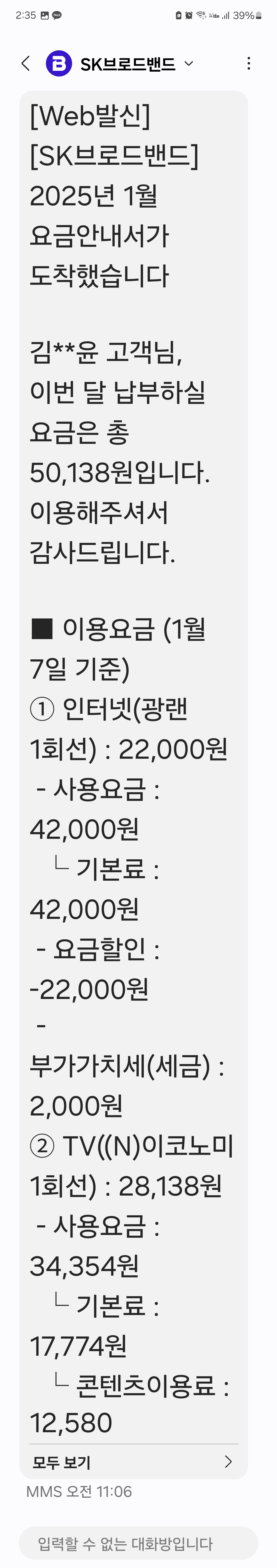 인터넷 요금 모바일 요금서