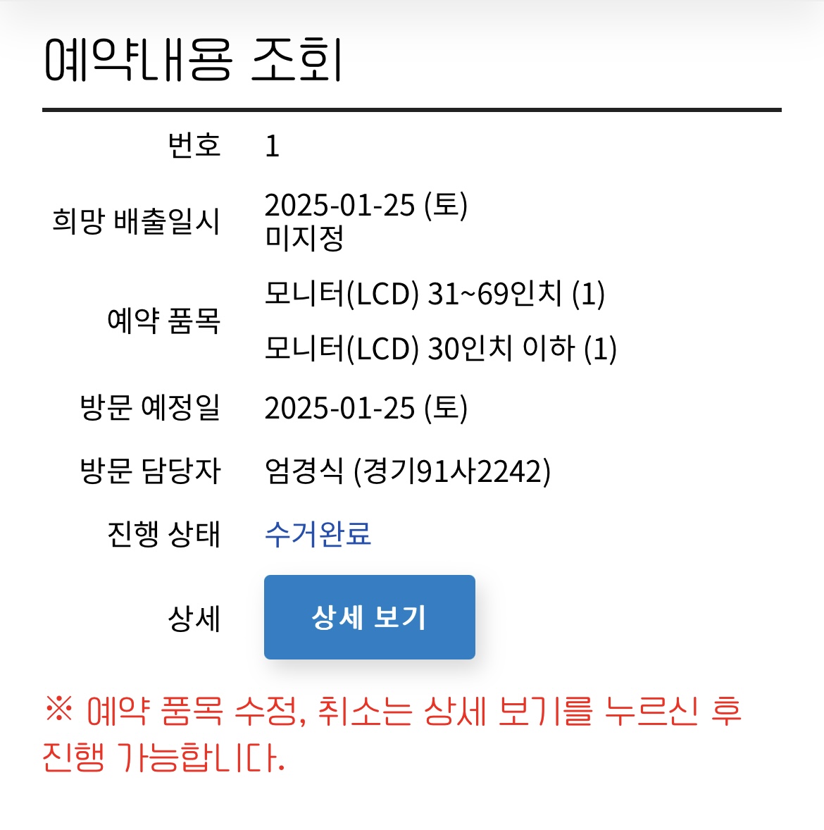 폐가전 배출 완료
