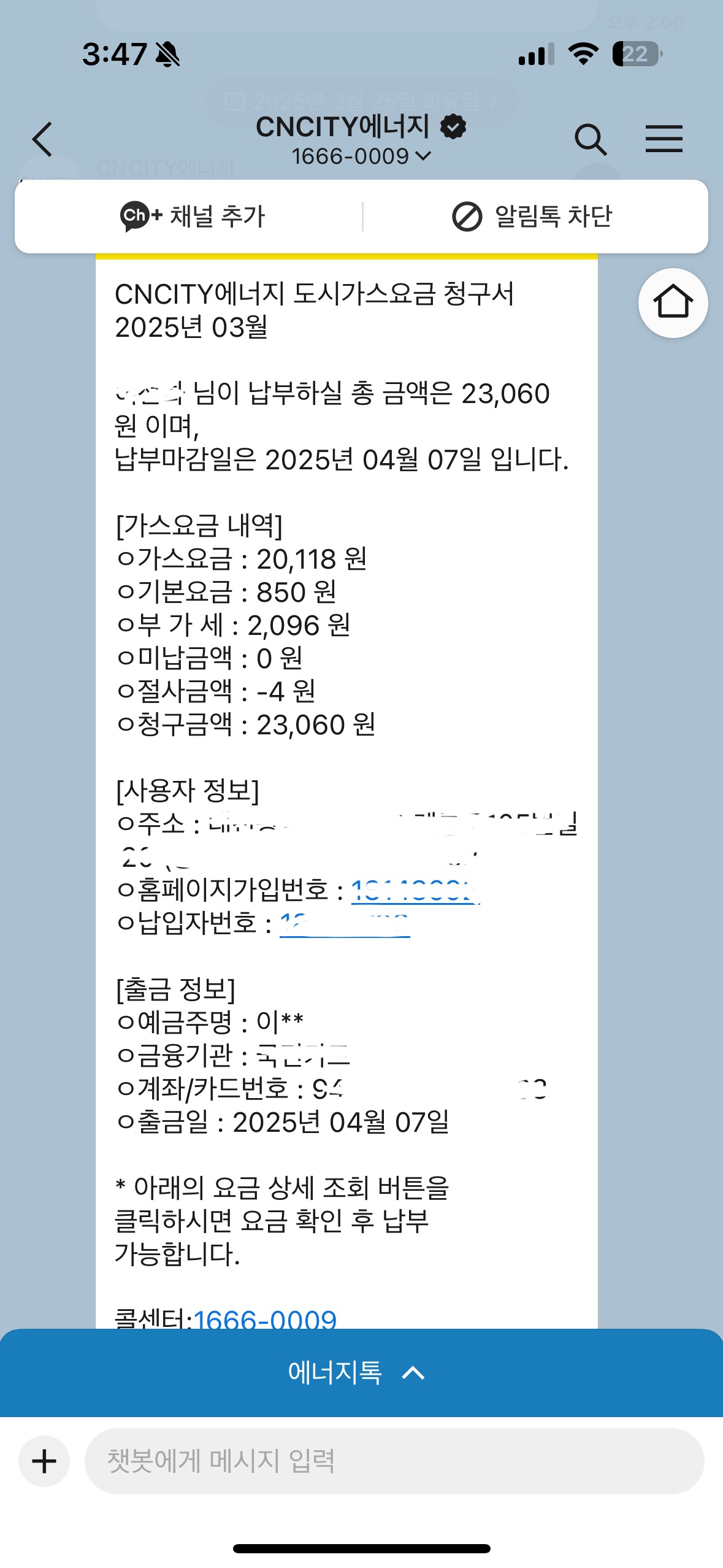 도시가스청구서