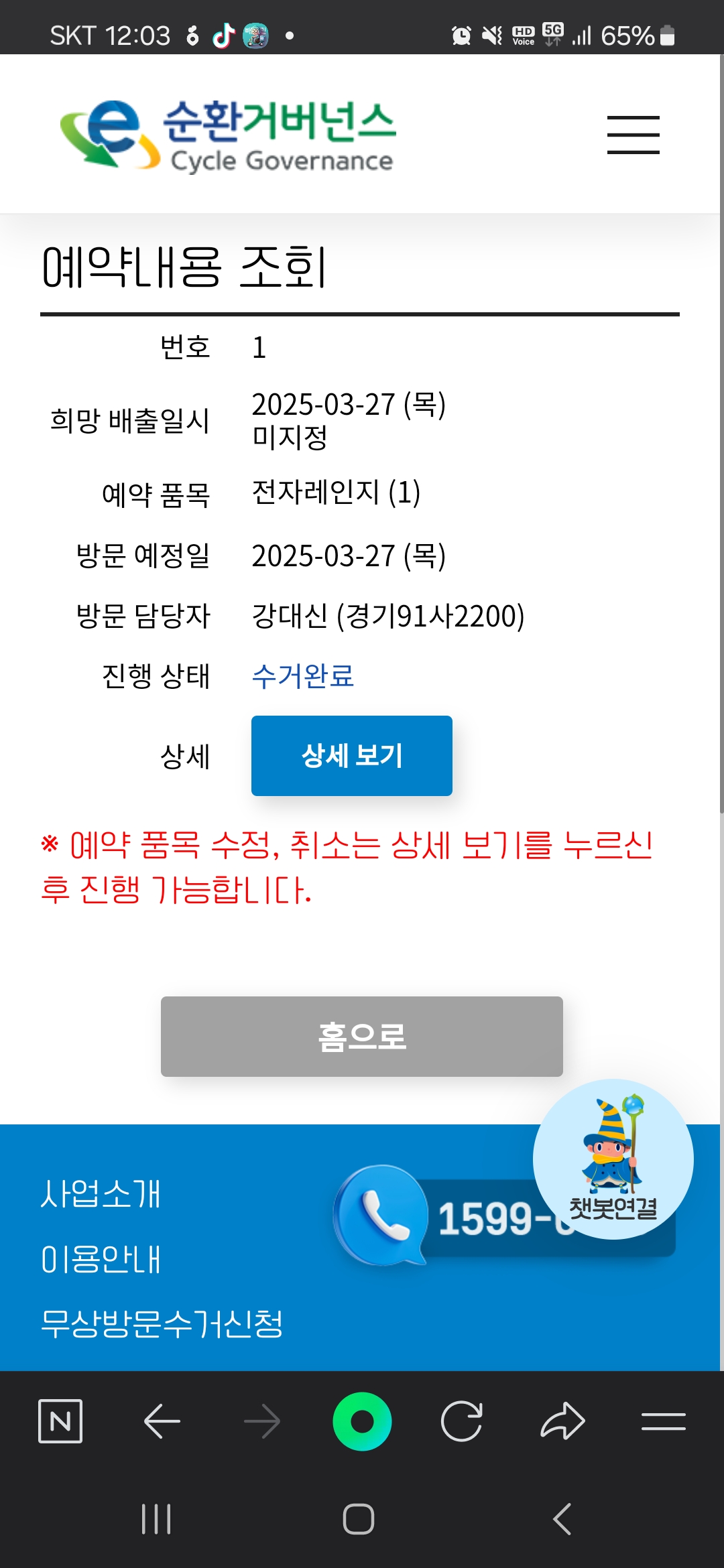 전자레인지 수거완료 되었어요^^