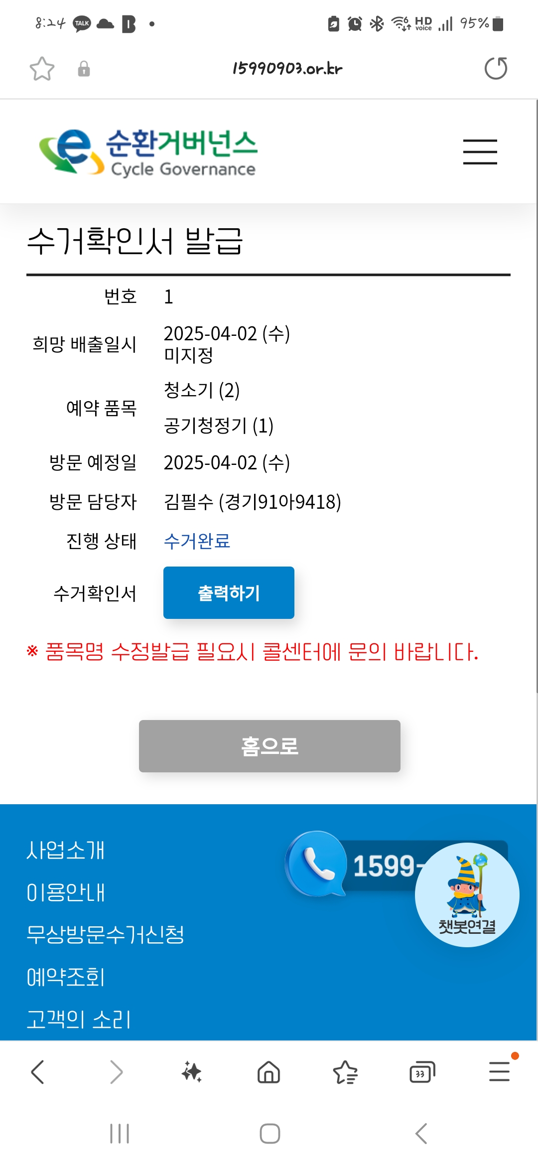 아침에 일찍 수거해주셨어요 속이 다 시원하네요