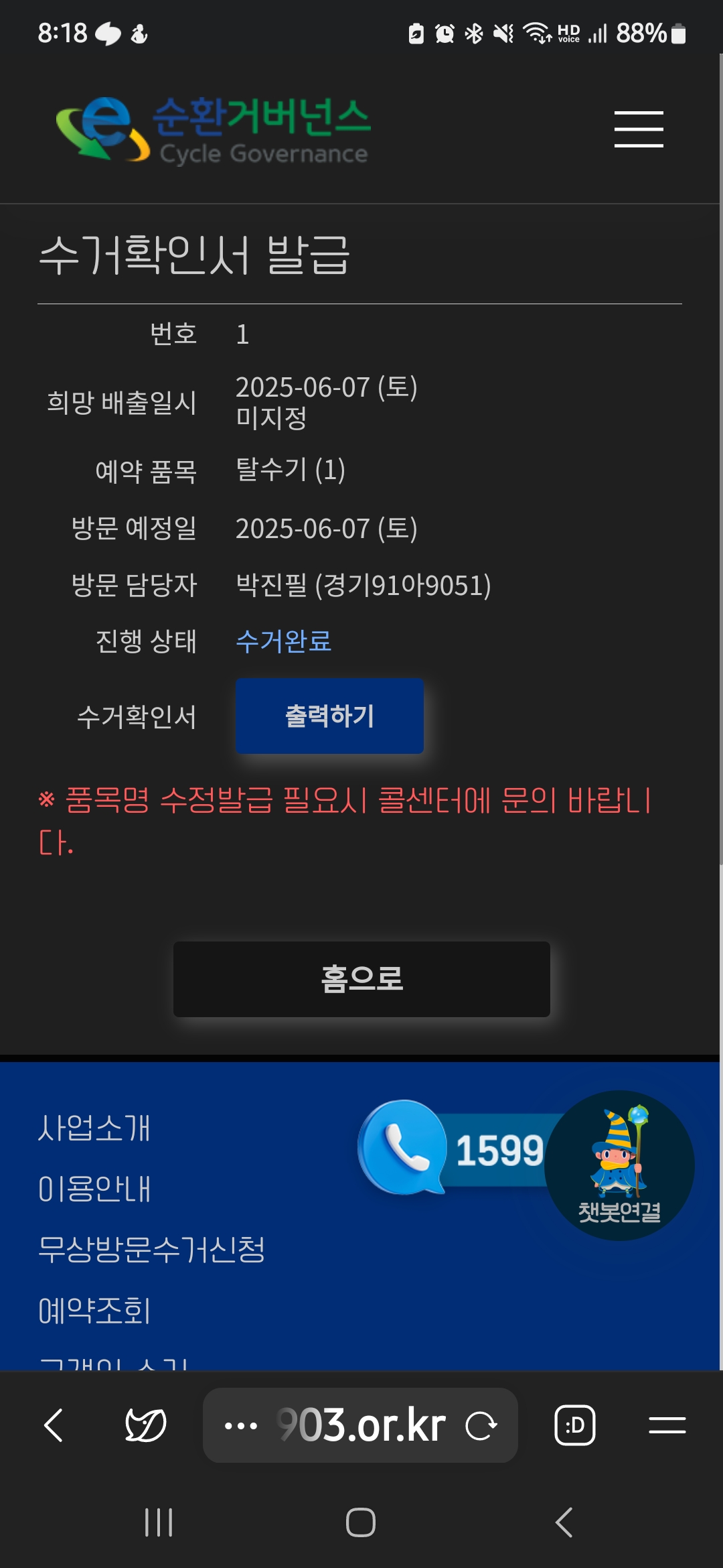 토요일에 수거