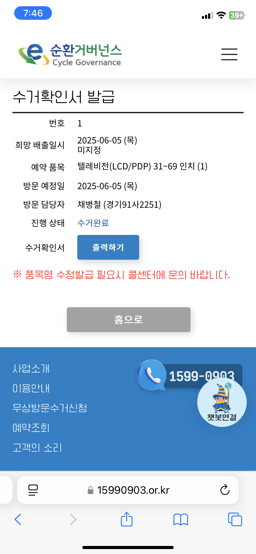 폐가전 TV 배출이요.