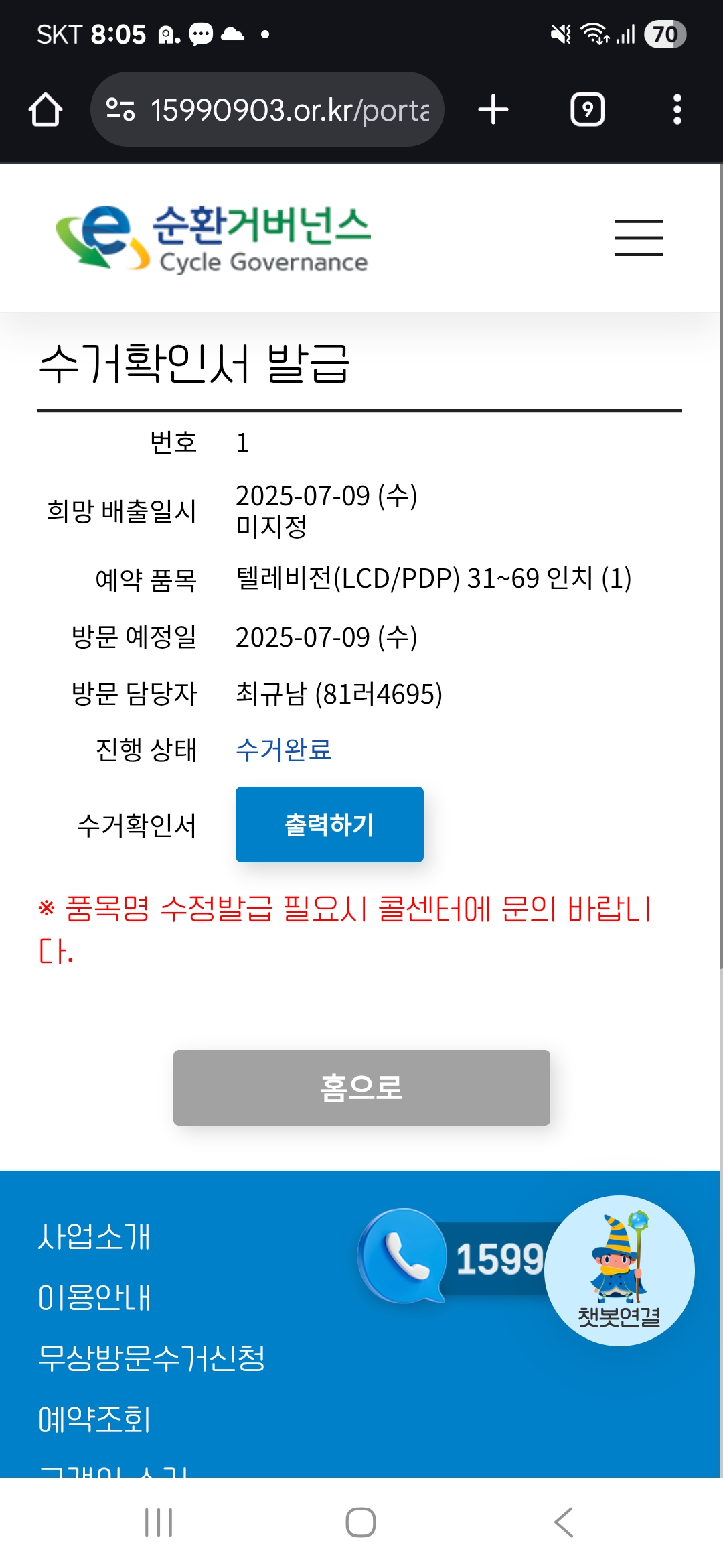 고장난 TV 배출