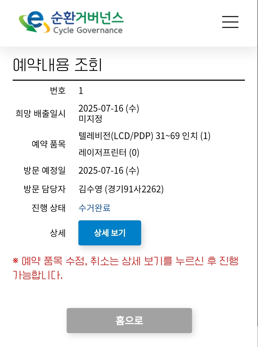 폐가전제품 배출 완료