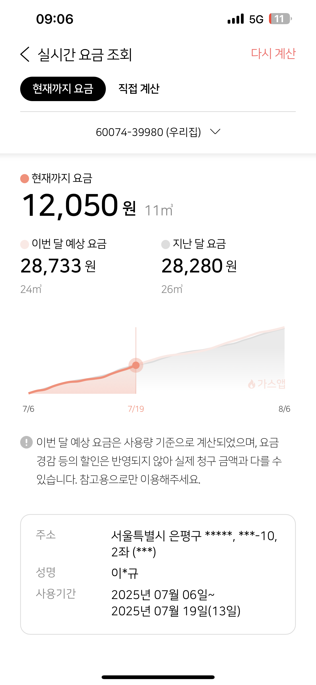 모바일로 요금 계산했어요!