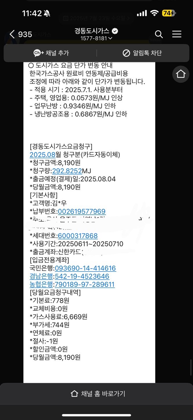 도시가스 모바일 청구서