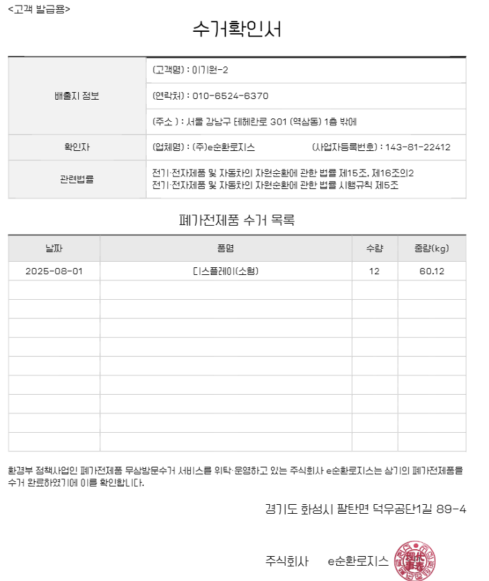 모니터 수거처리완료