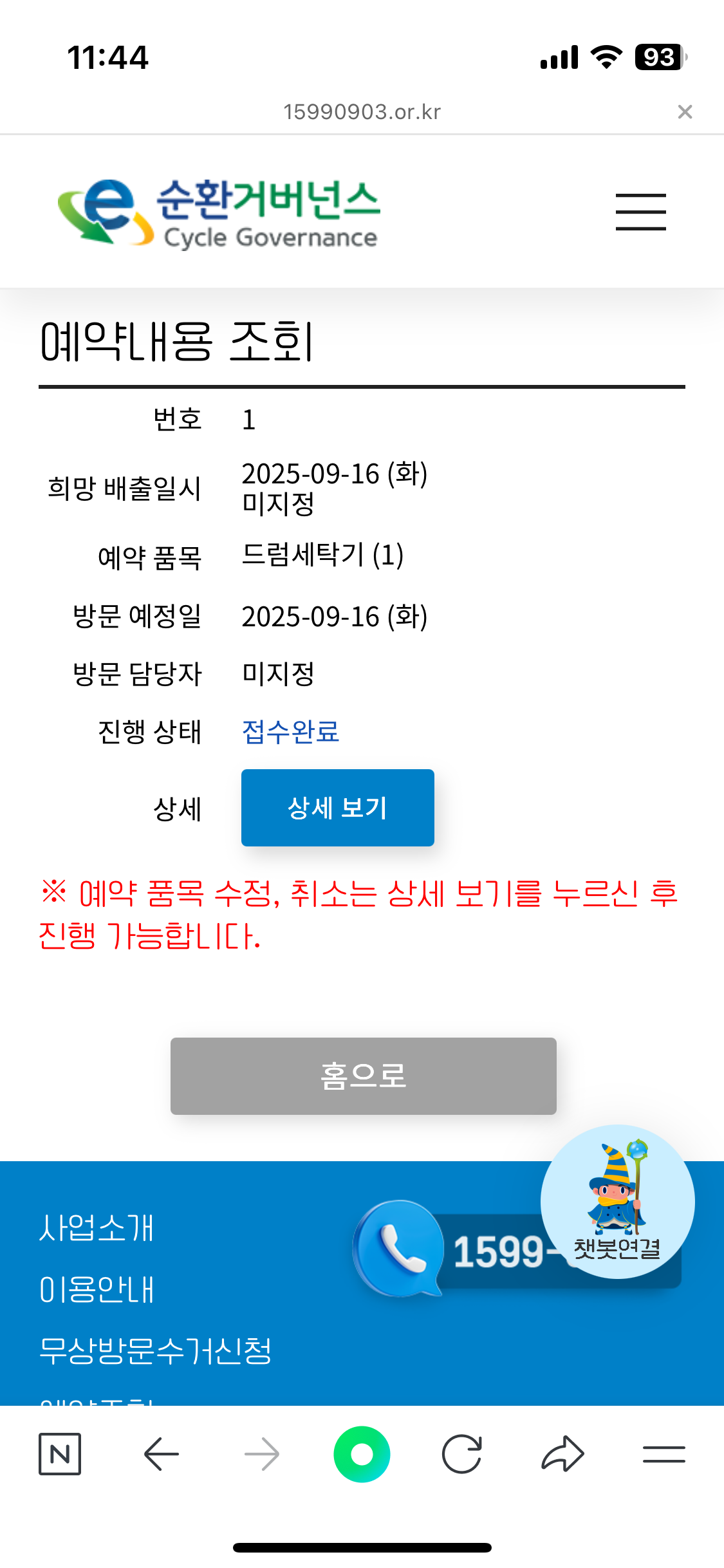 작동은 되지만 용량이 적은 세탁기 수거 부탁드렸어요.
