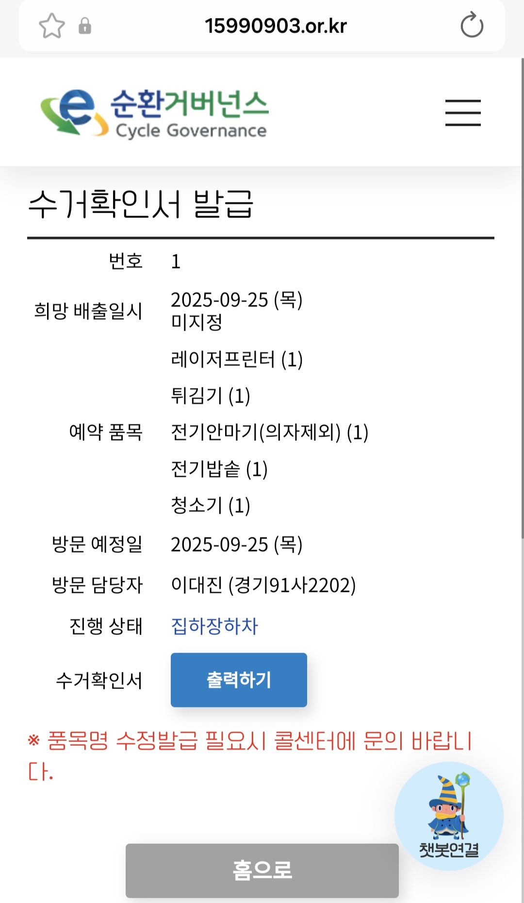 수거 날짜 맞춰서 수거 바로 잘 해주셨어요!