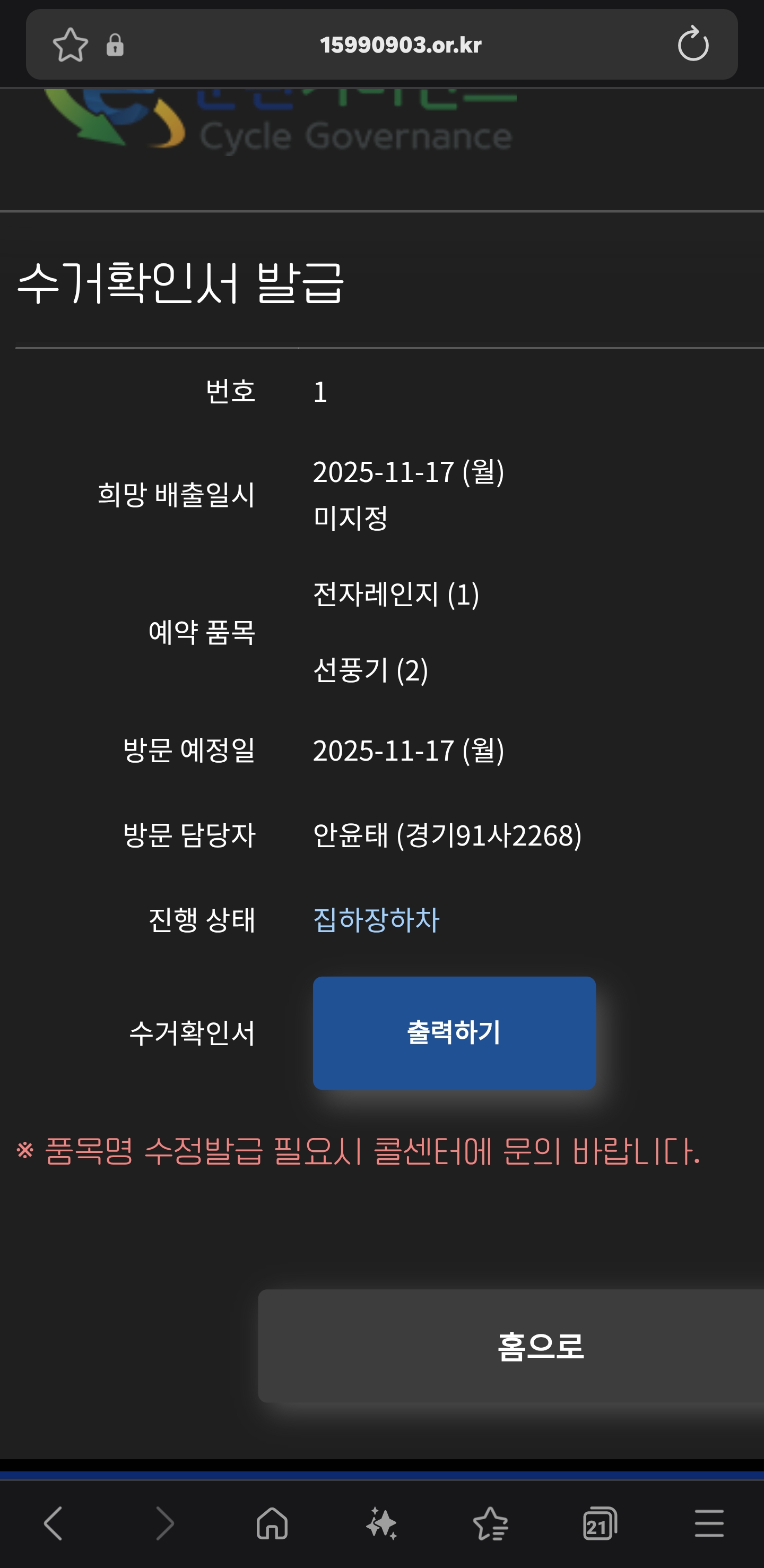 폐가전 무상수거 신청해수 수거 완료~