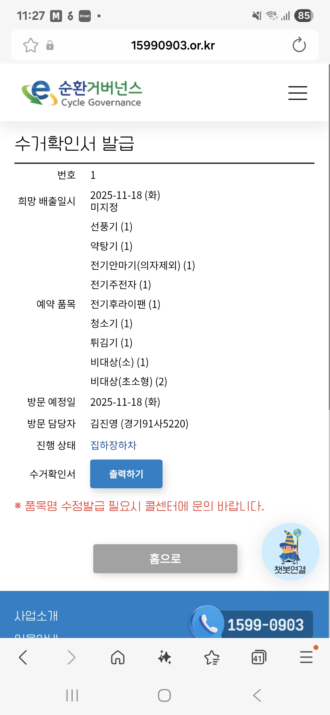 폐가전제품 수거 완료
