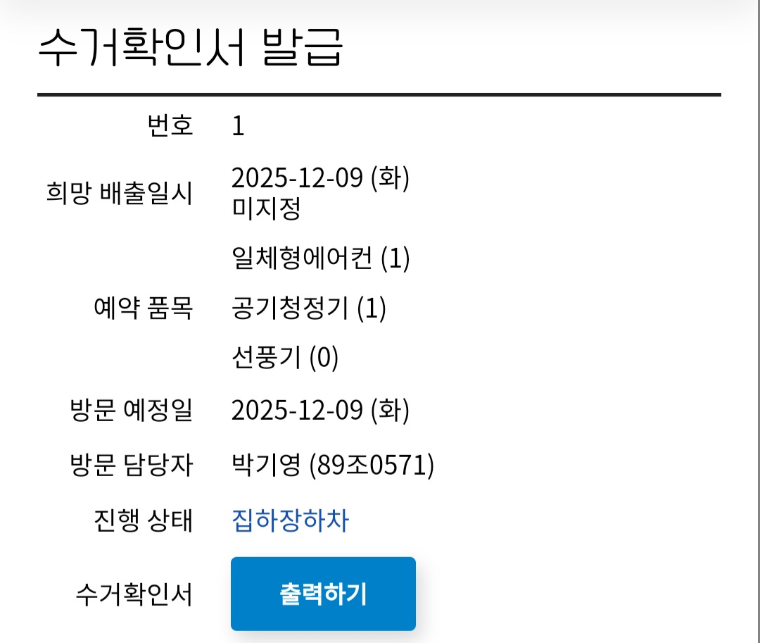 첫 번째 폐가전 수거 완료!