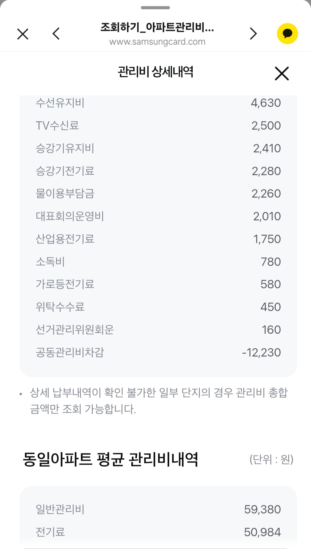 아파트 관리비 모바일 요금 계산