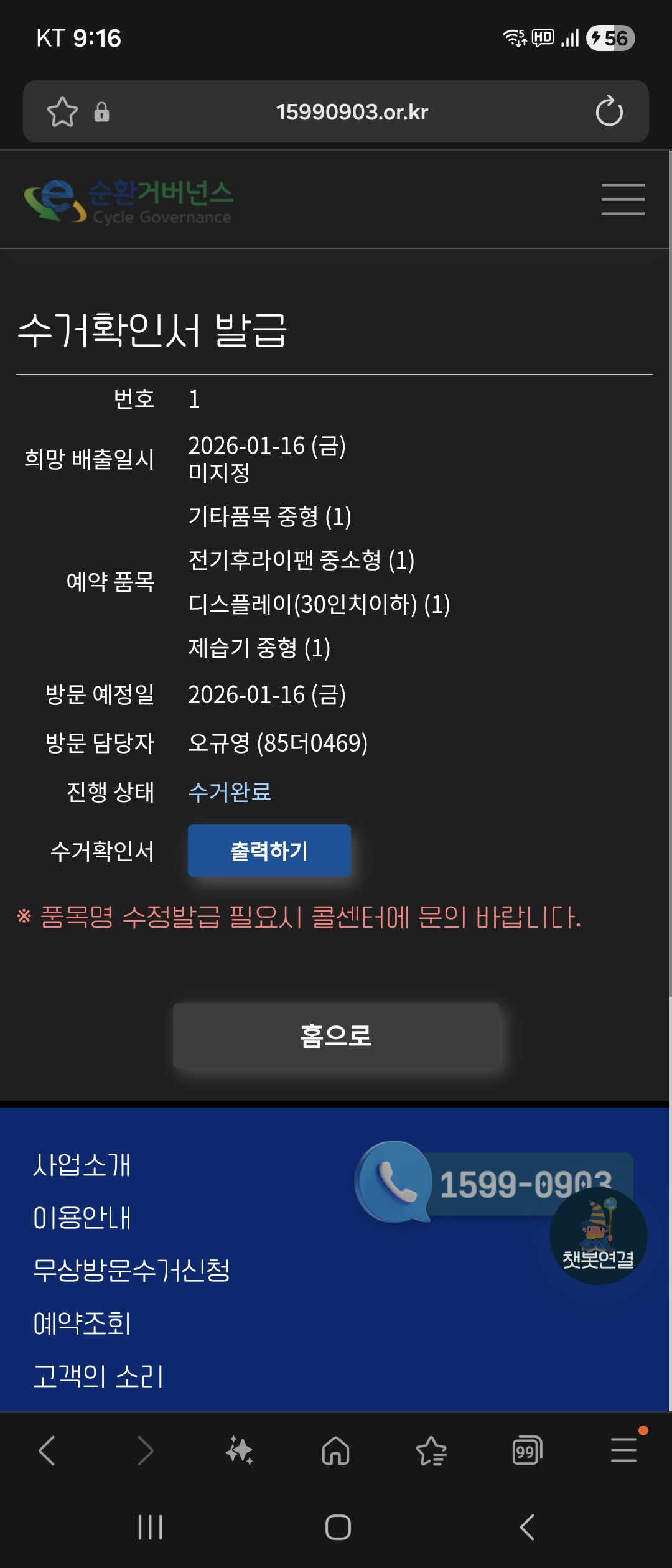 폐가전 집앞에서 수거해주시니 좋네요.