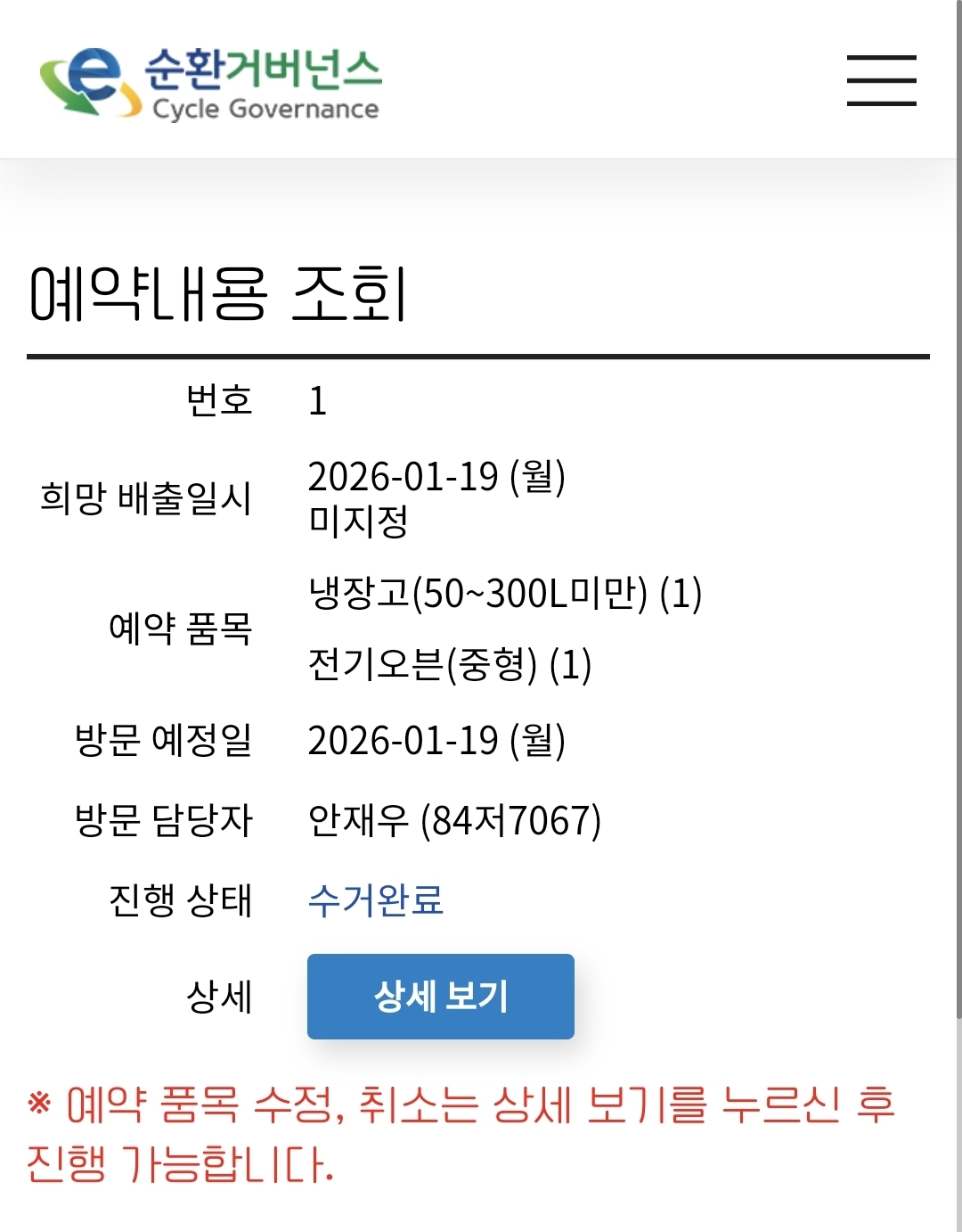 냉장고 수거완료
