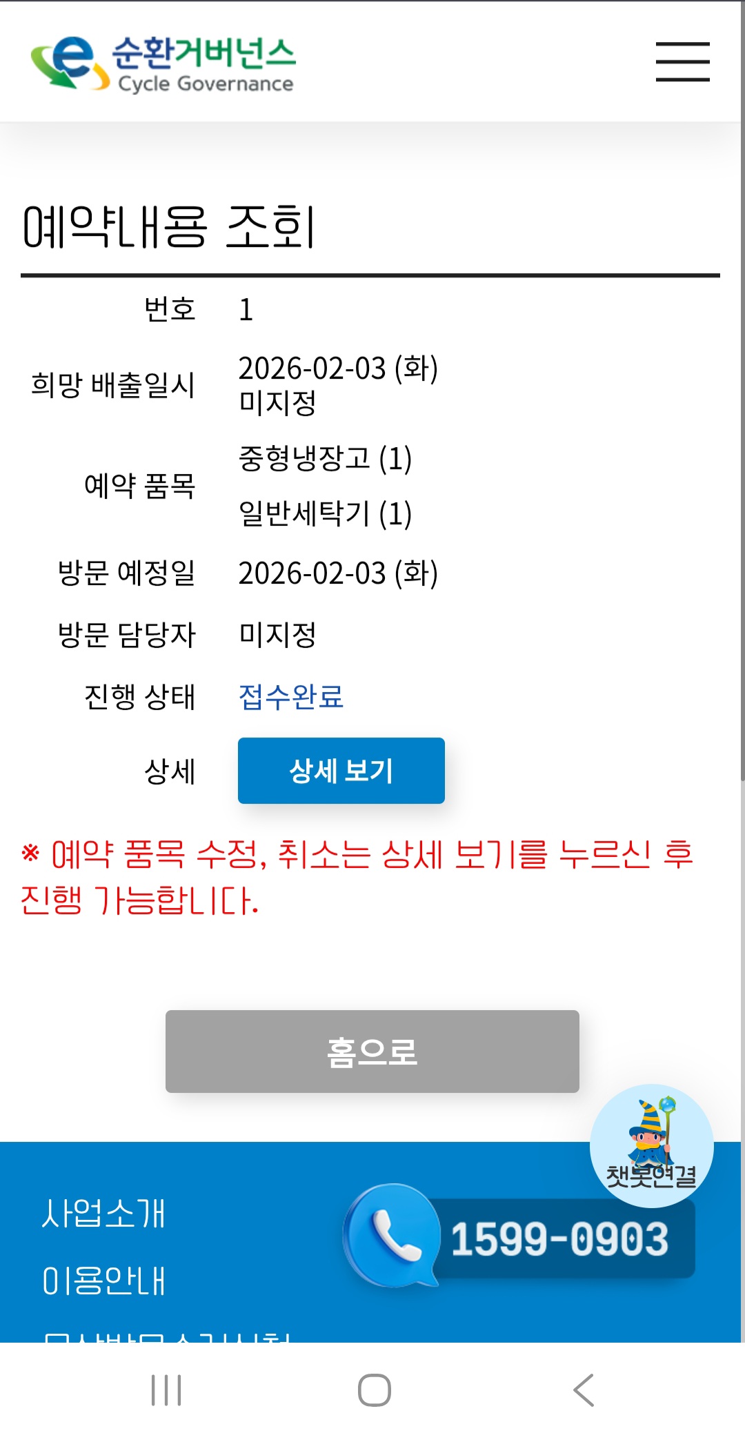 냉장고 세탁기 폐가전 수거 예약 완료
