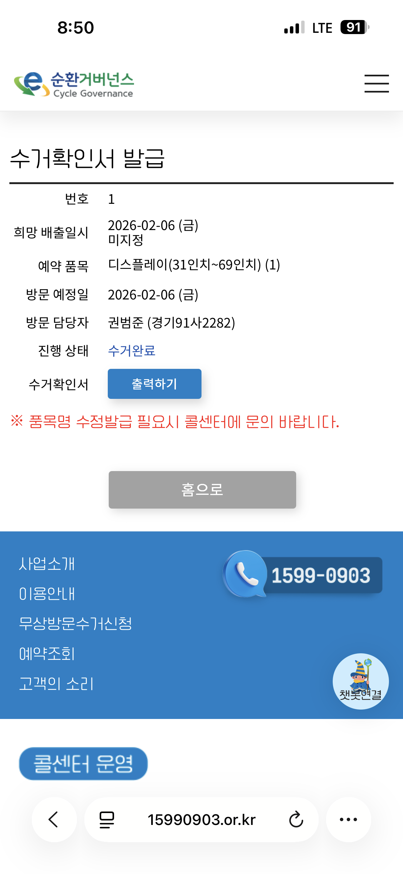tv 무상수거 완료하였습니다