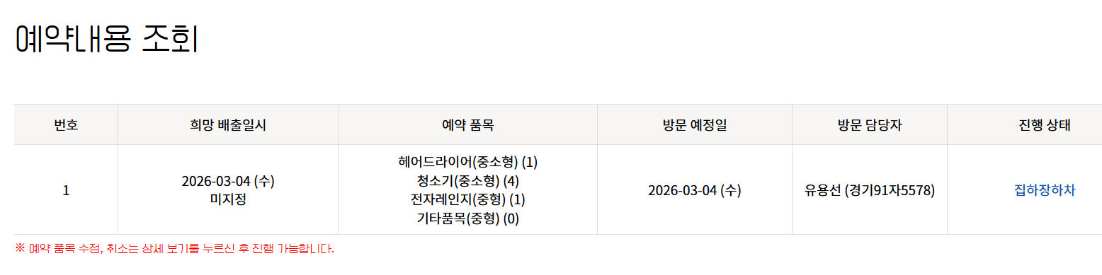 폐가전 방문 배출 완료했어요