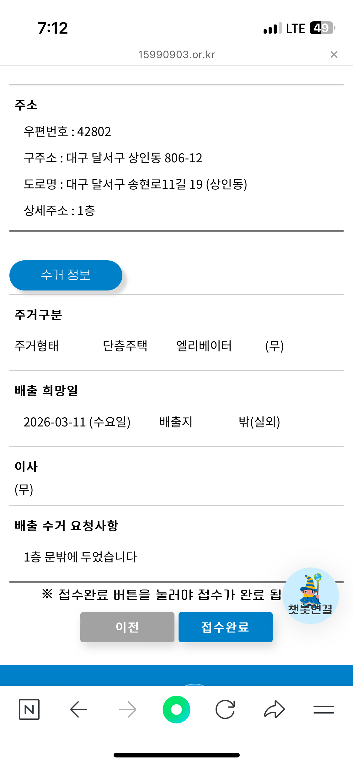 폐가전냉장고 수거요청