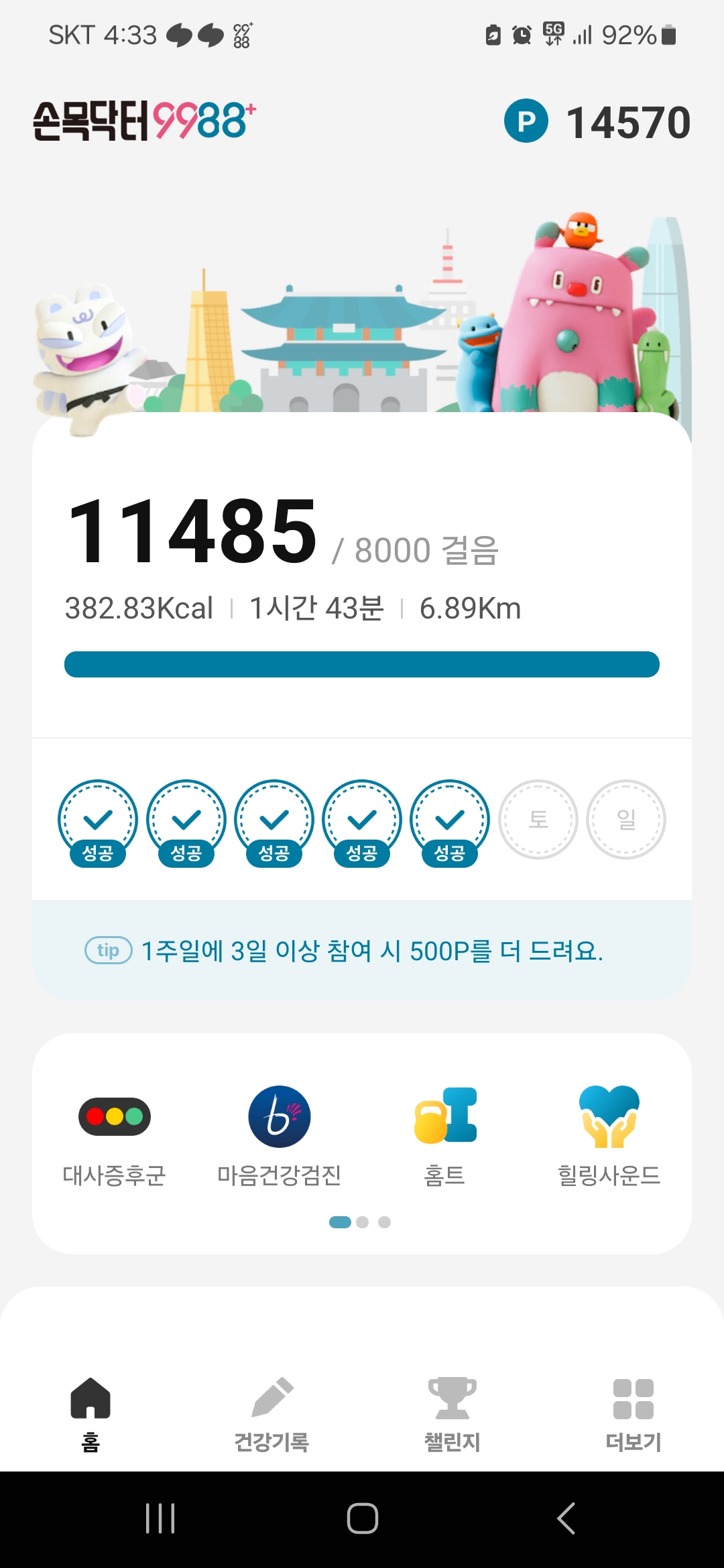 챌린지 적합도가 부족한 경우 비전시 (본인만 보임) 및 적립되지 않을 수 있습니다.
