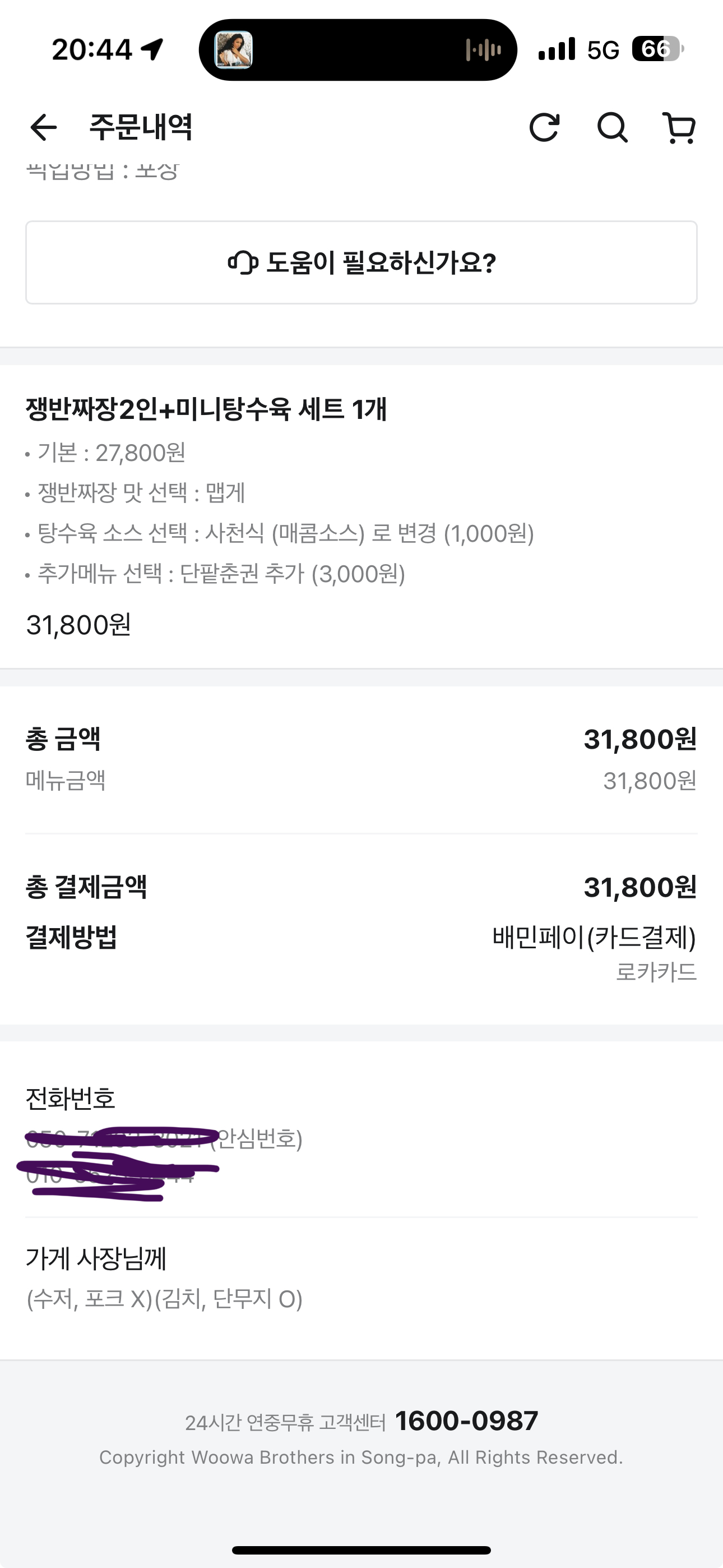 배달은 아니구 픽업.. 일회용품 안받기
