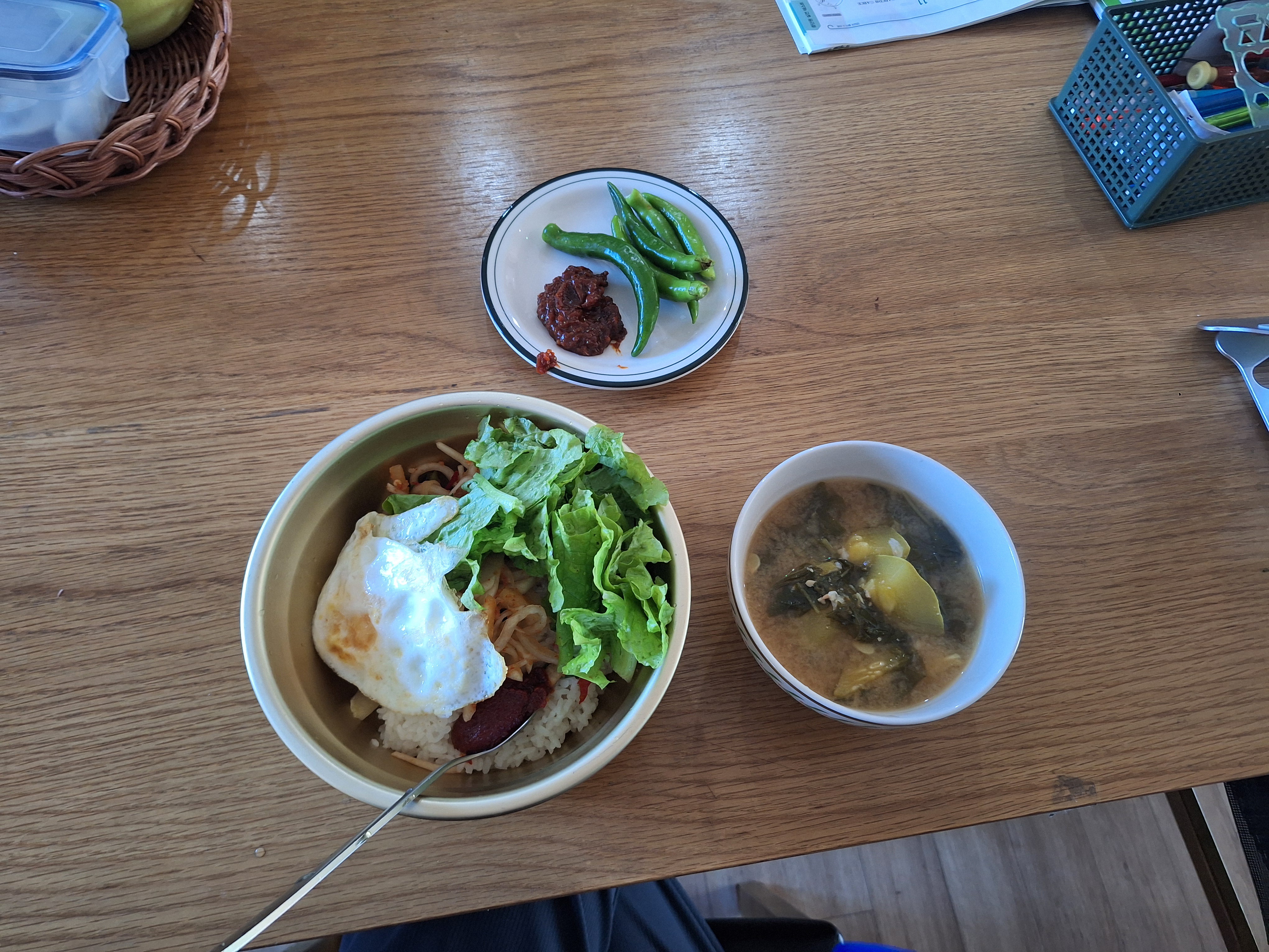 상추넣은 생채비빔밥과 호박넣은 아욱된장국