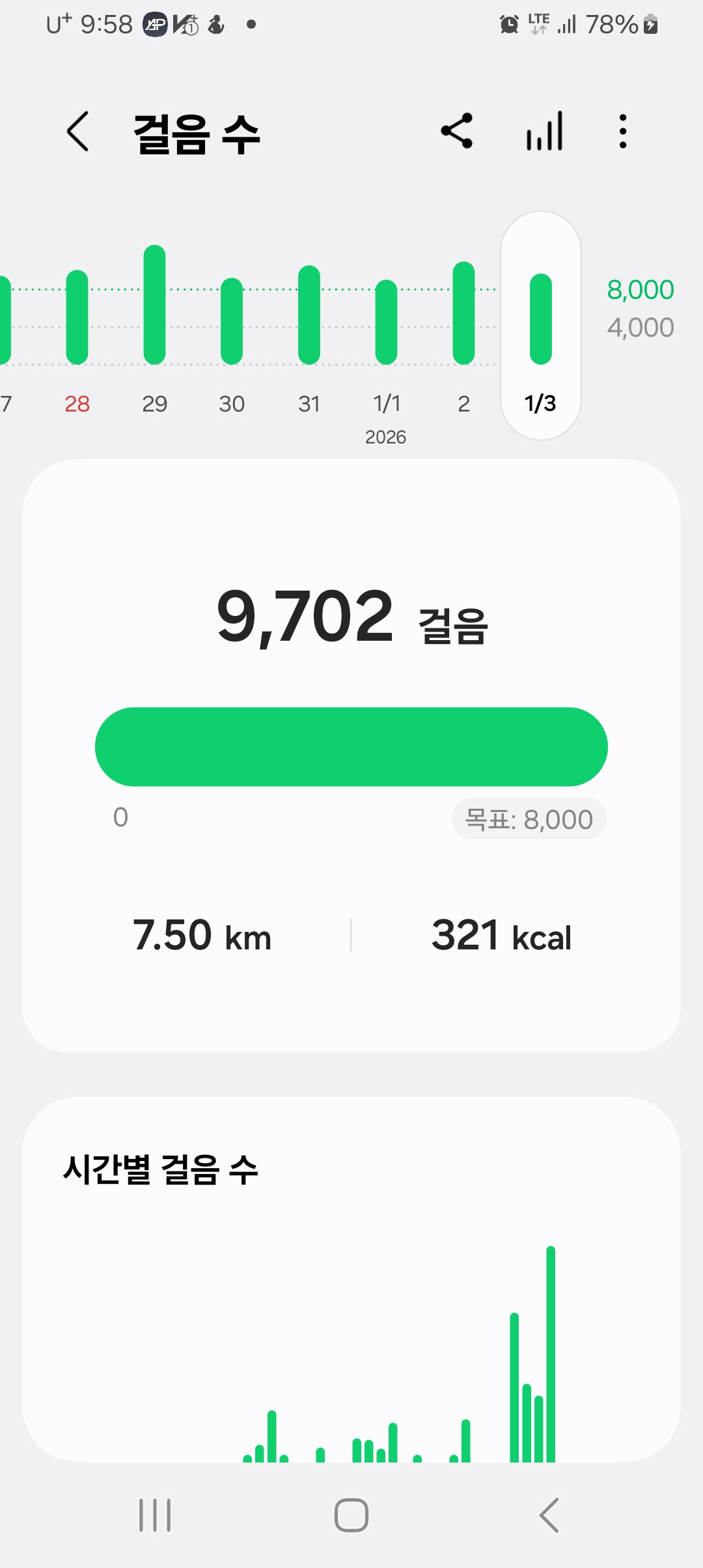 오늘 9천보 걸었어요