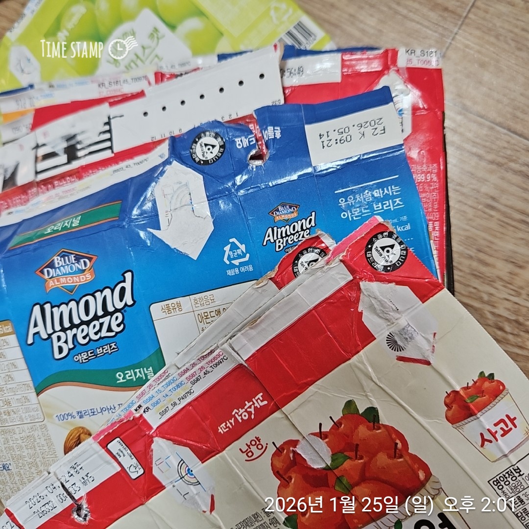 테트라팩 씻고 잘라서 모았어요