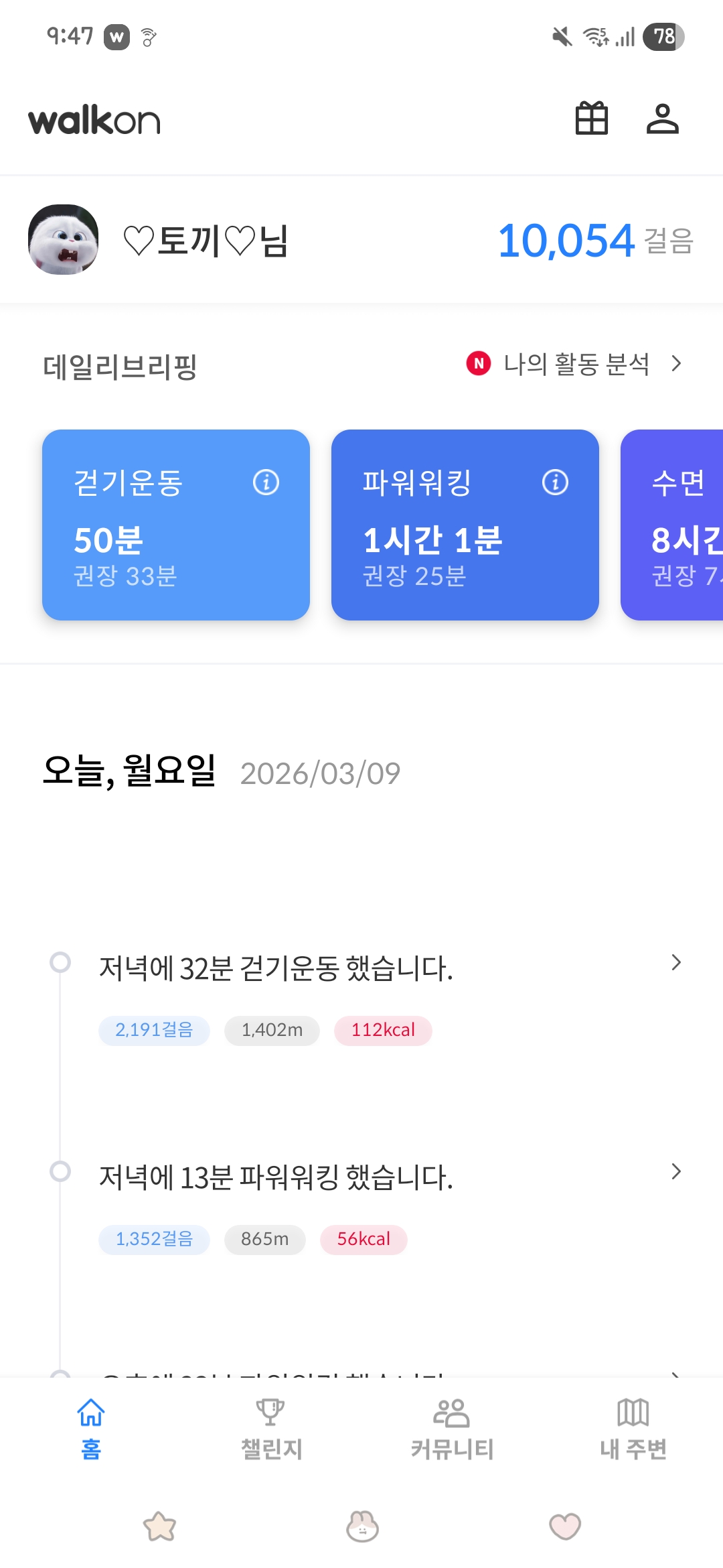 챌린지 적합도가 부족한 경우 비전시 (본인만 보임) 및 적립되지 않을 수 있습니다.