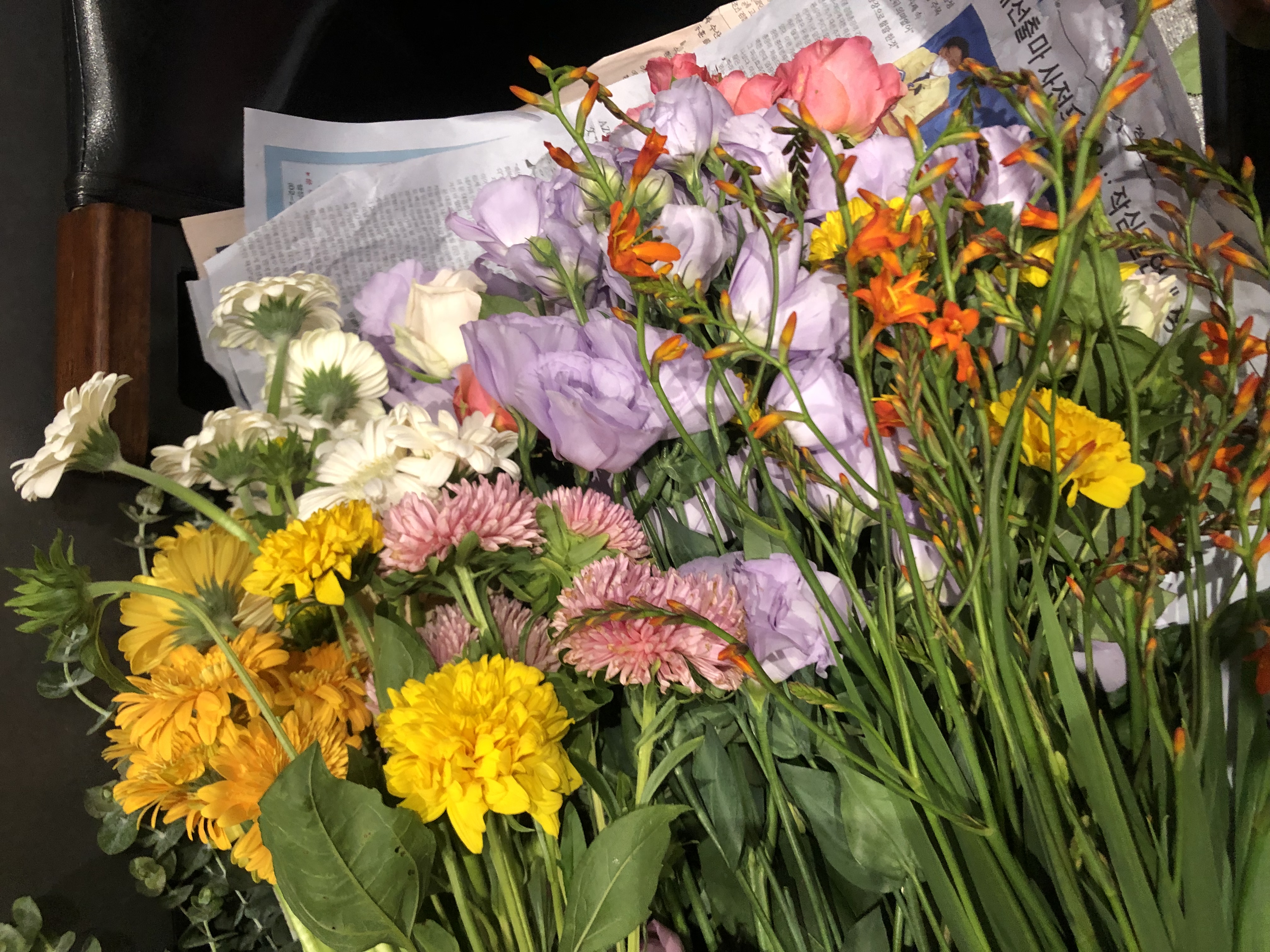 행사 때문에 구매한 꽃들이 많이 남아서 엘리베이터에 나눔했어요~! 금방 가져가시고 쪽지도 붙어있어서 너무너무 뿌듯했네요???