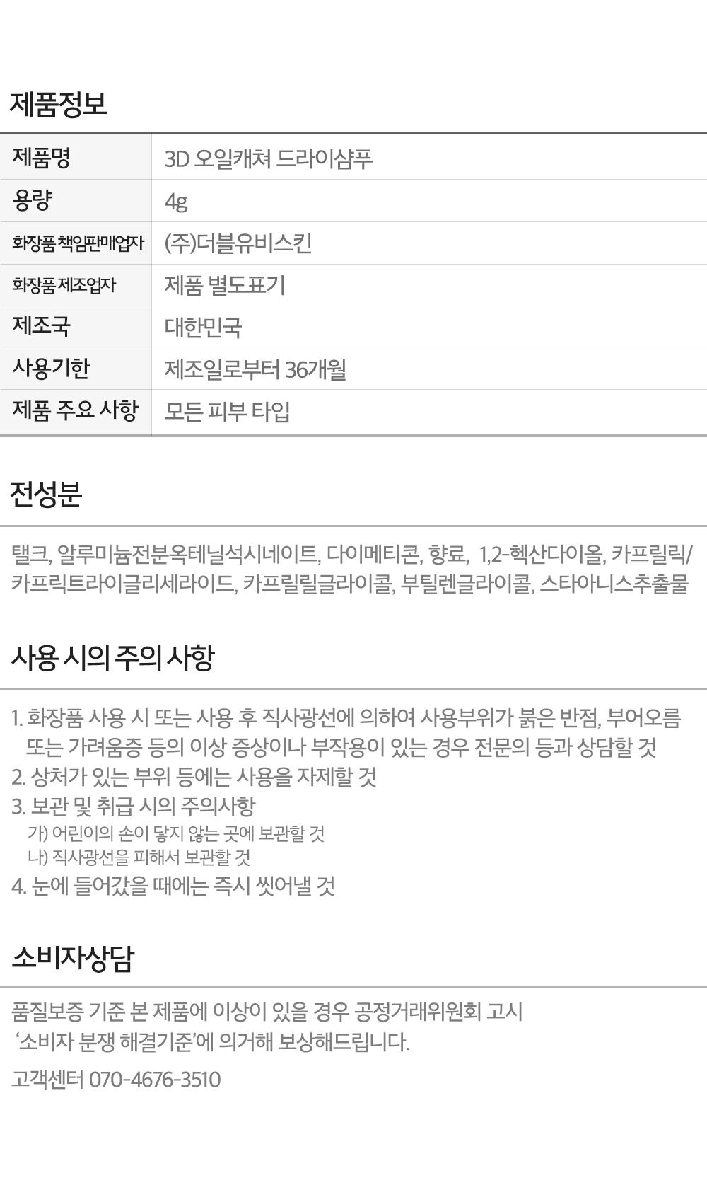 [트리트룸] 3D 오일캐쳐 드라이샴푸 4g
