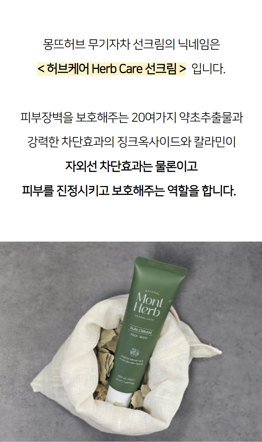 [몽뜨허브] 무기자차 선크림 50ml
