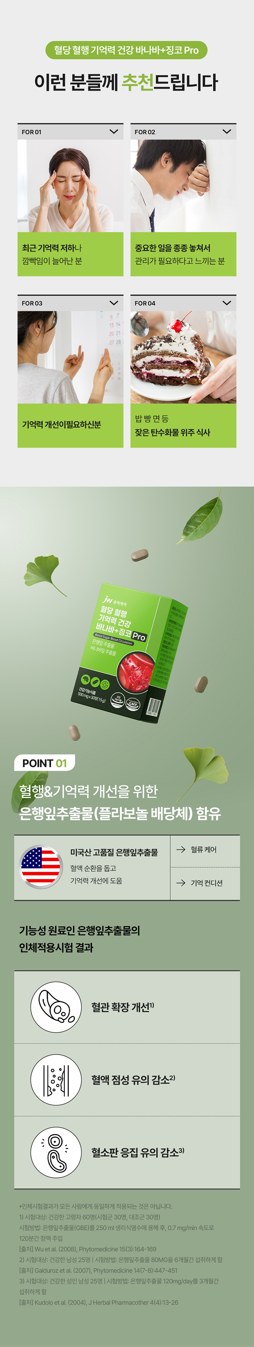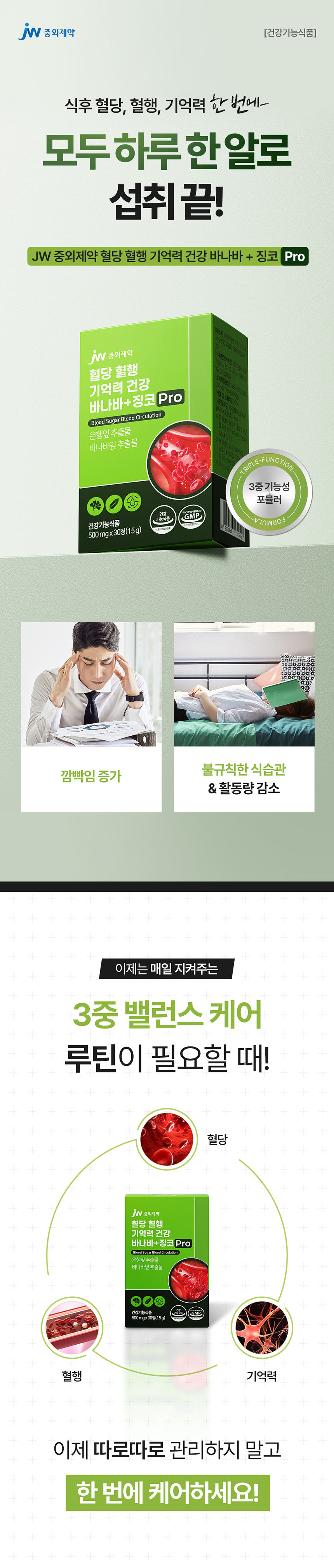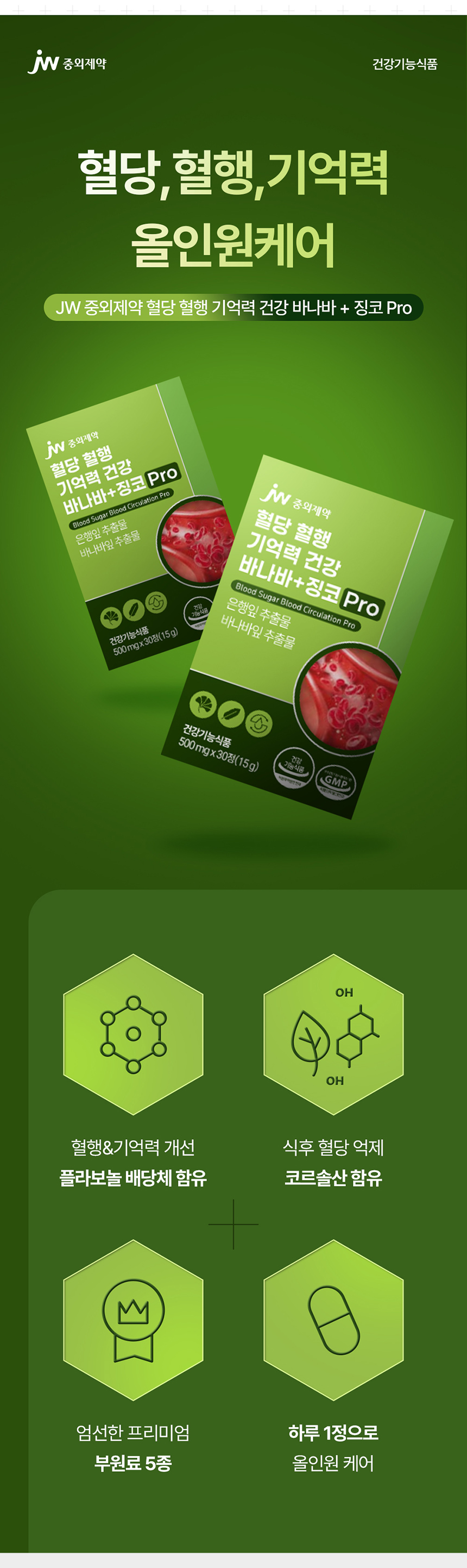 JW중외제약 혈당 혈행 기억력 건강 바나바+징코 Pro 500mg × 30정