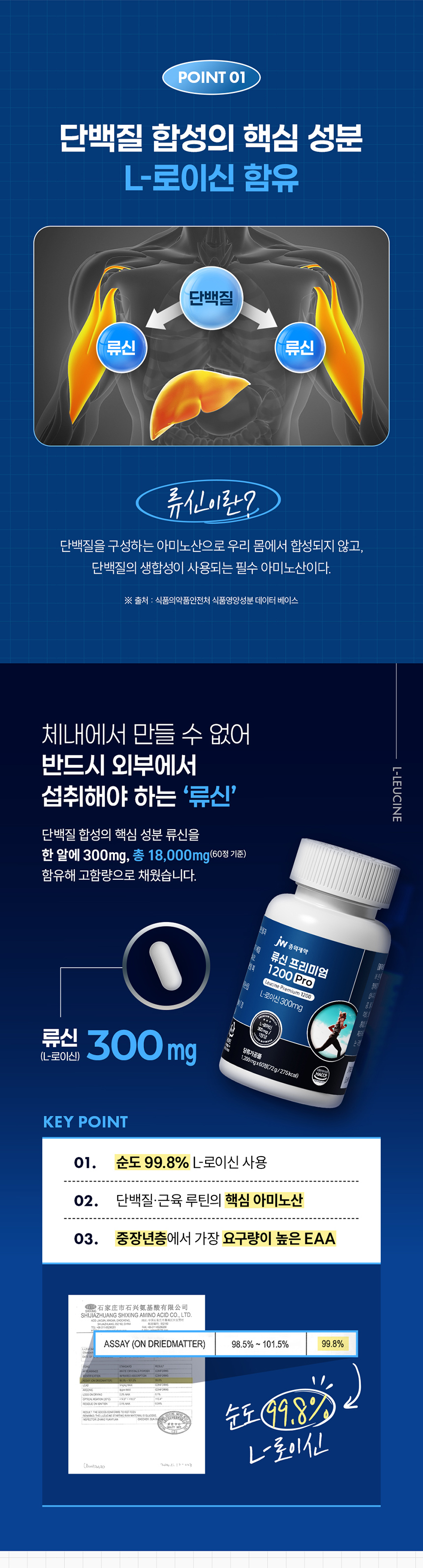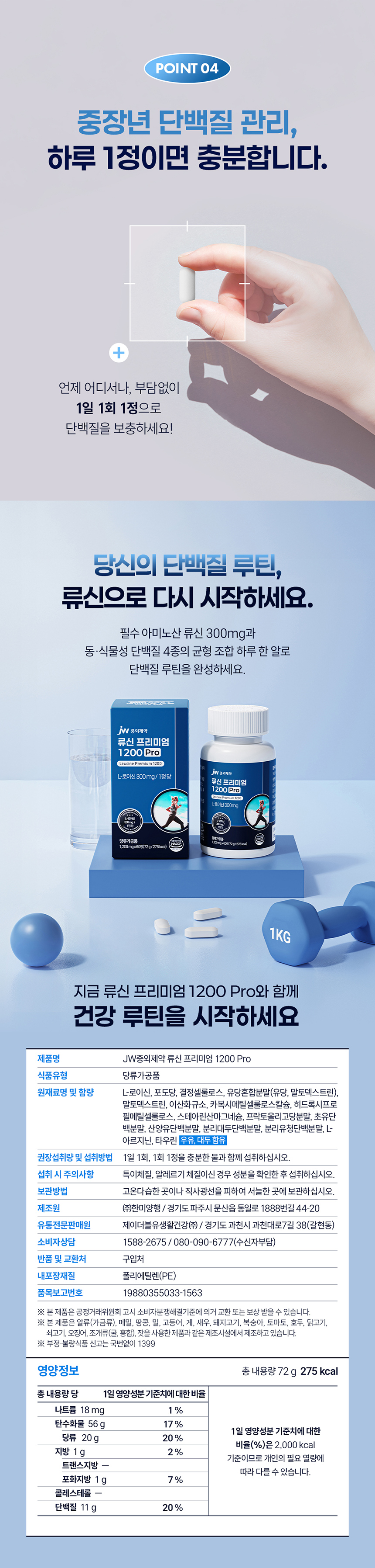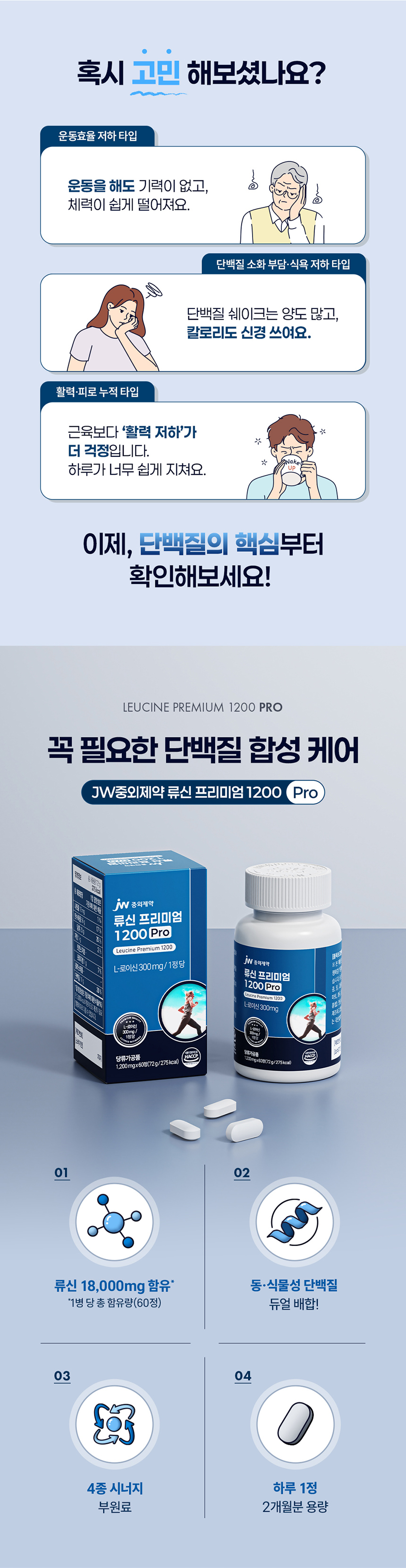 JW중외제약 류신 프리미엄 1200 Pro 1200mg × 60정