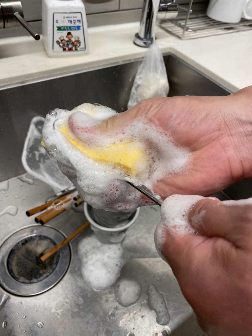 설거지를 할때 즐거운 일이 없는데요.