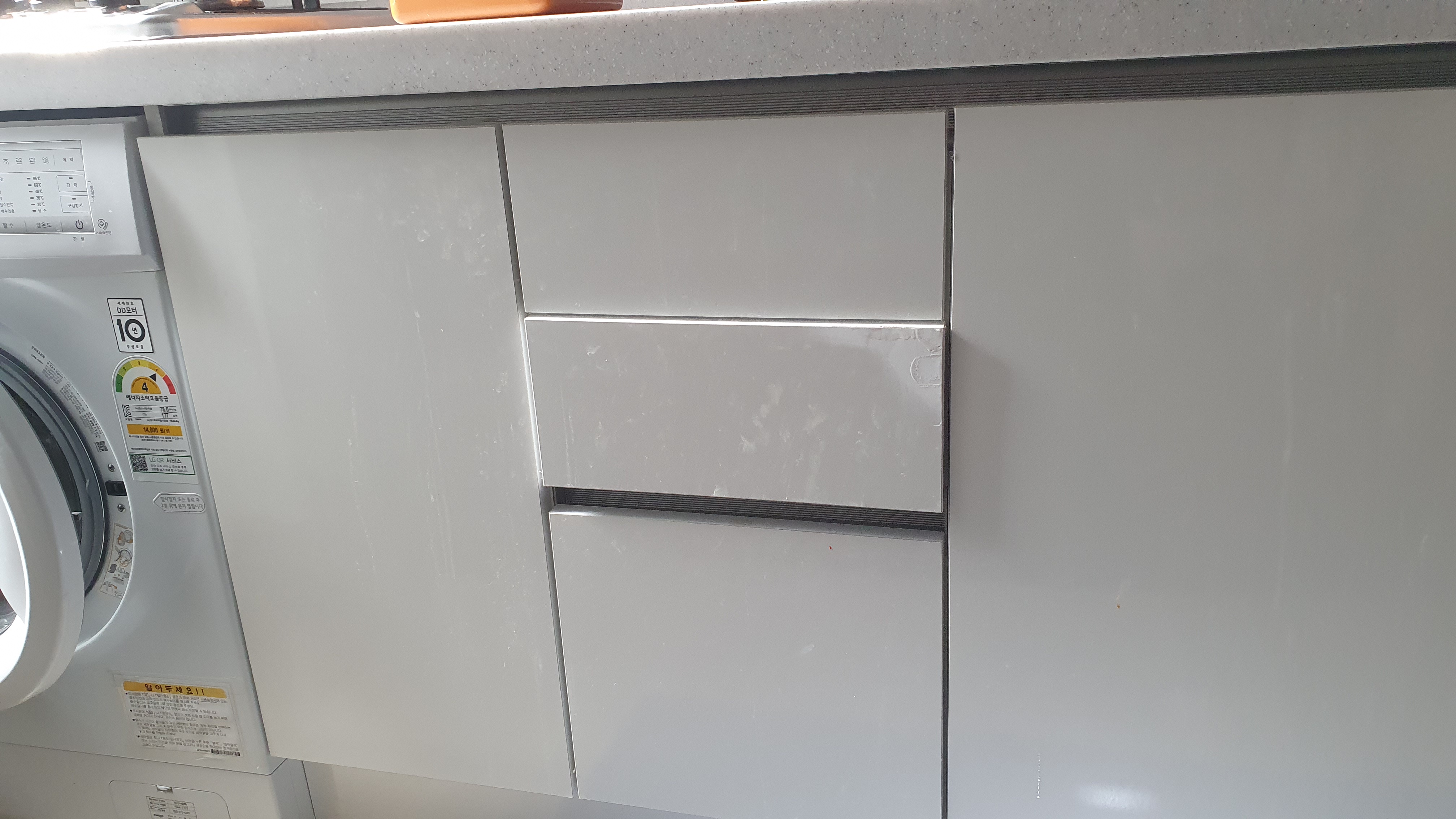 주방싱크대밑 서랍장이 얼룩덜룩 하더라구요.