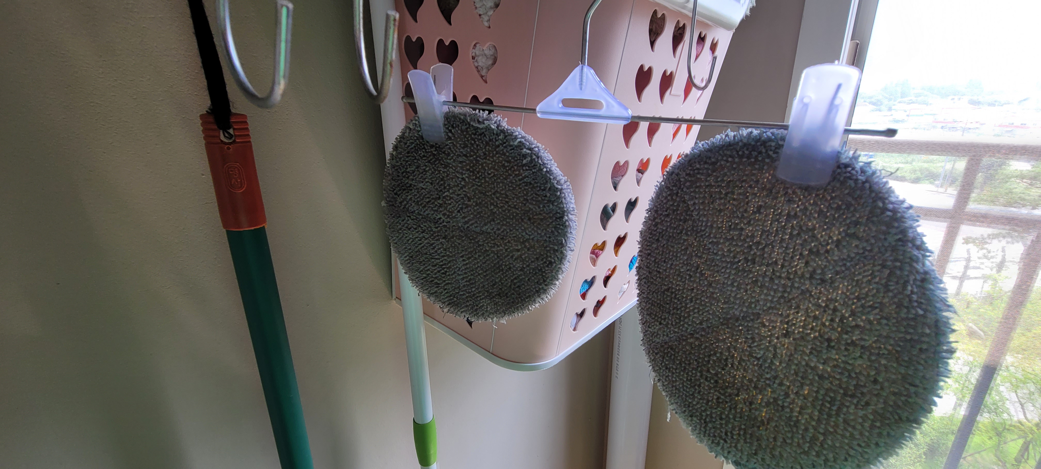 물걸레청소포 손으로 주물주물빨아 햇볕에 널기~
