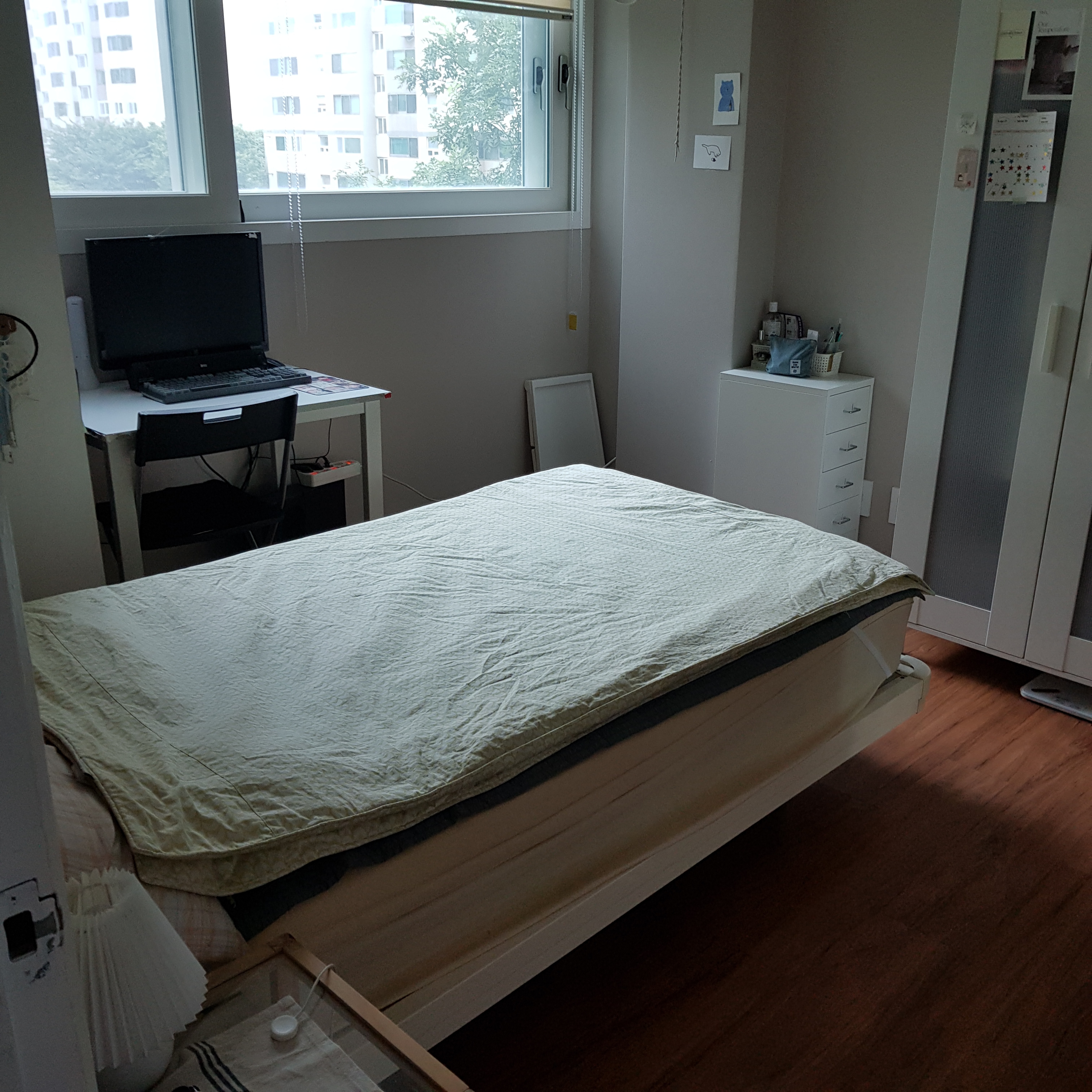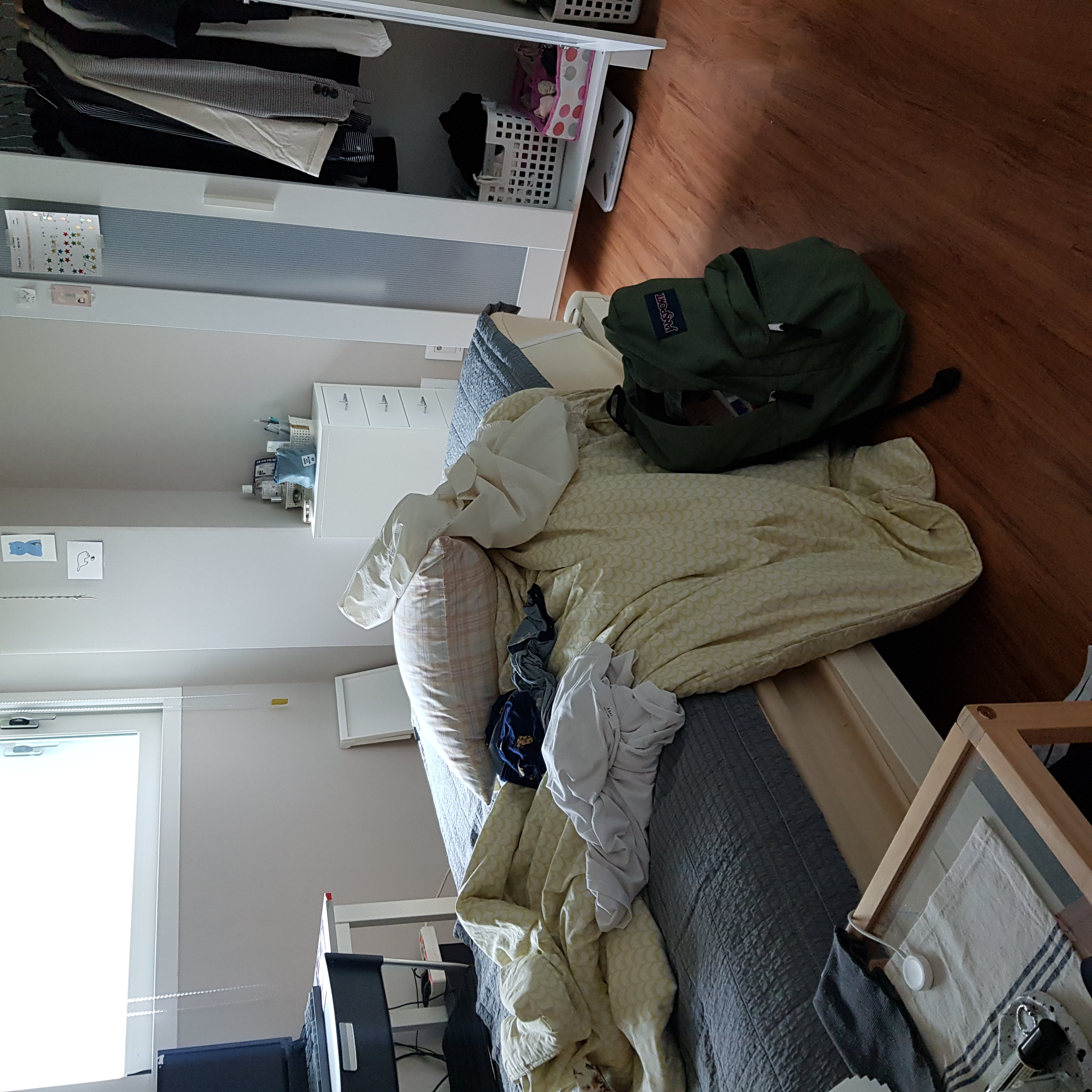 딸애가 아침에 뒤집어놓고 간 방