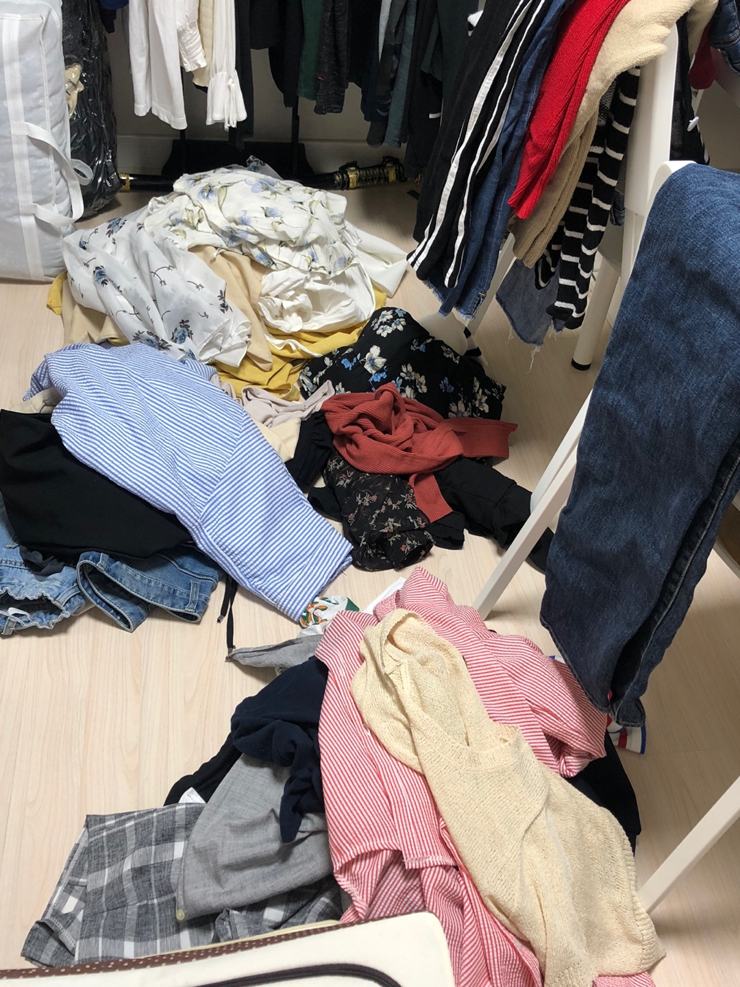 걸어두었던 여름옷은 리빙박스에 넣고 긴팔 긴바지를 꺼냈어요 ㅎㅎㅎ