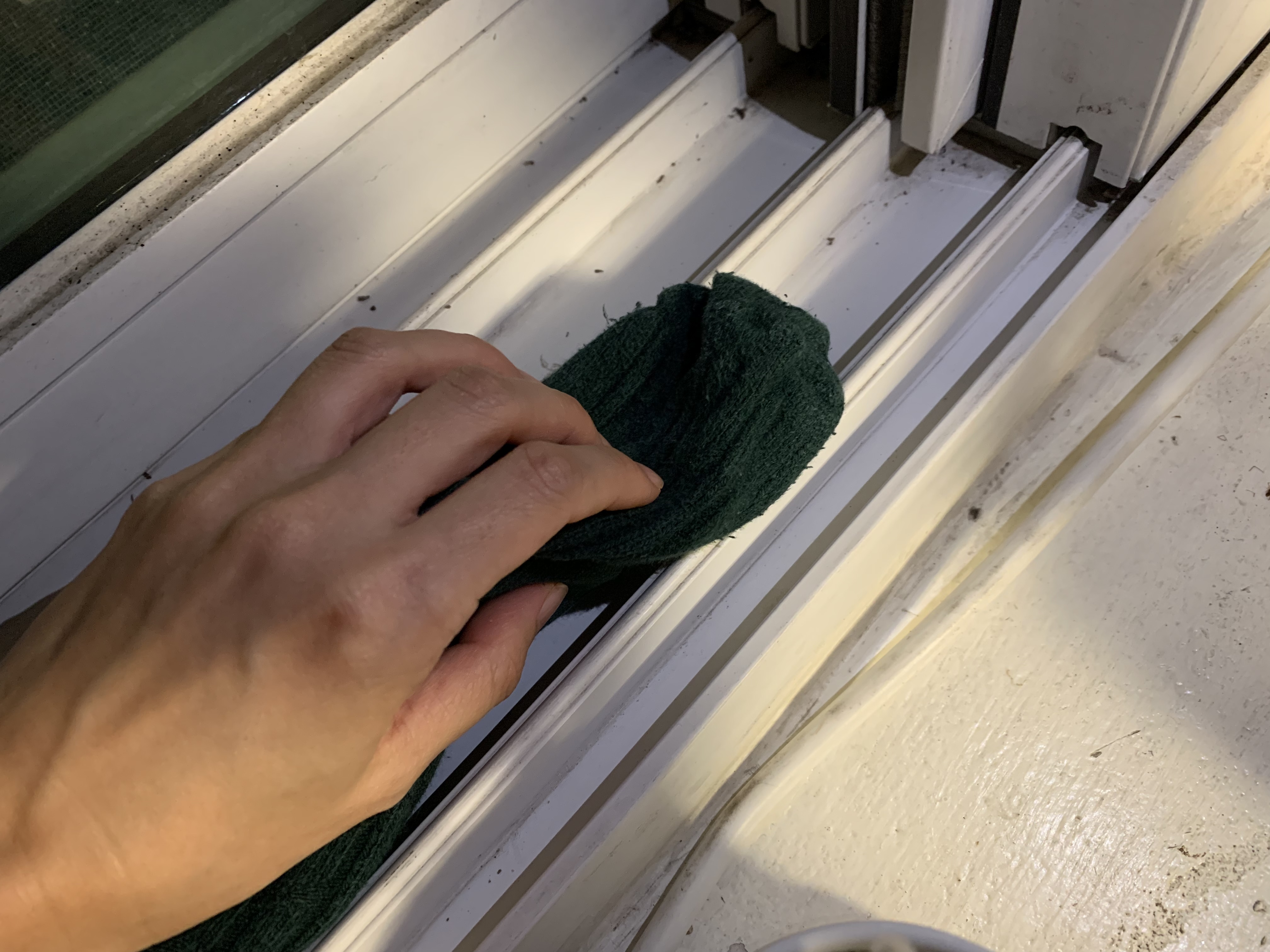 버릴 양말로 창틀의 먼지를 한번 닦고 버려줍니다.