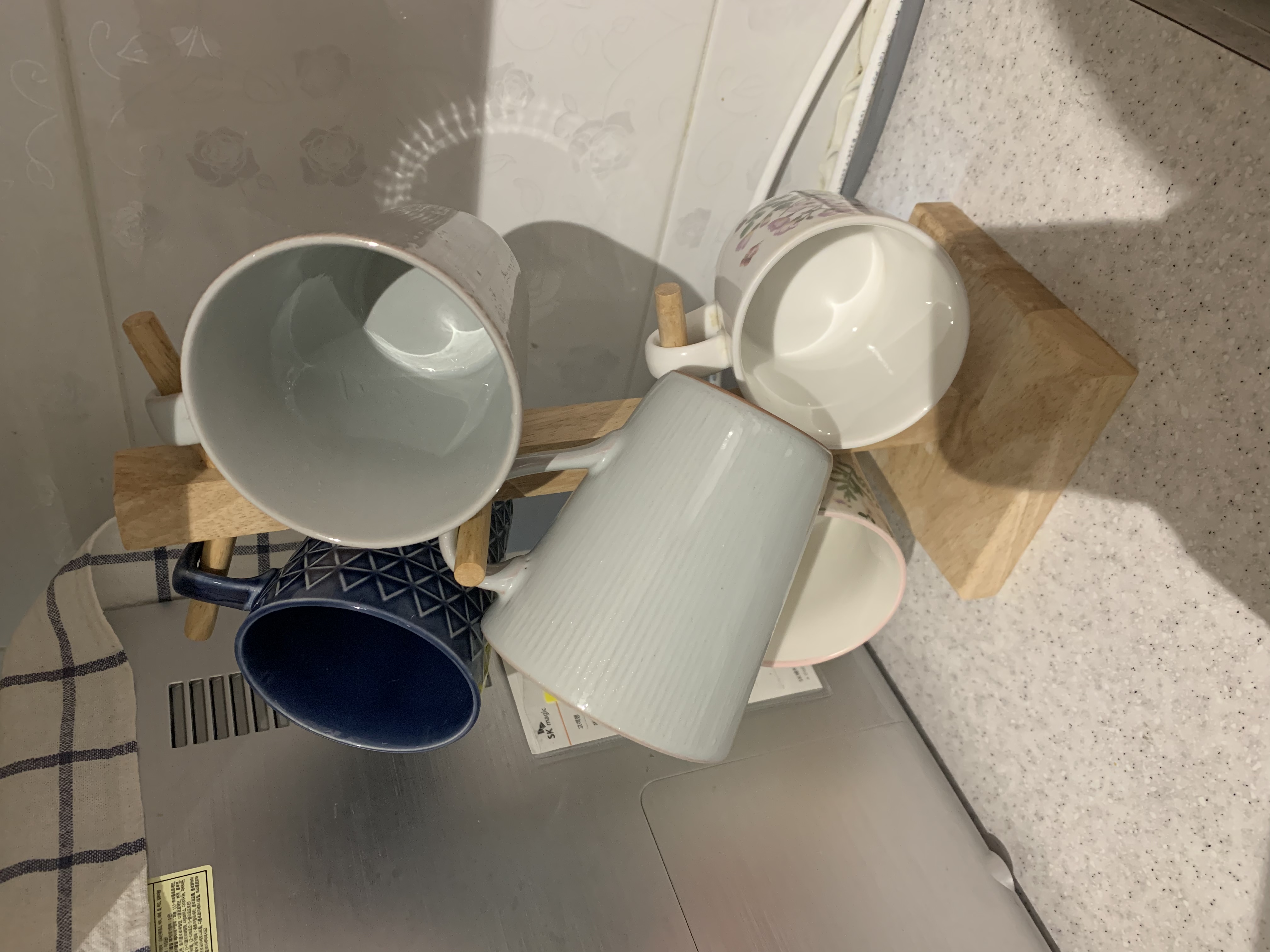 컵들도 컵보관걸이에 걸어줬어요.