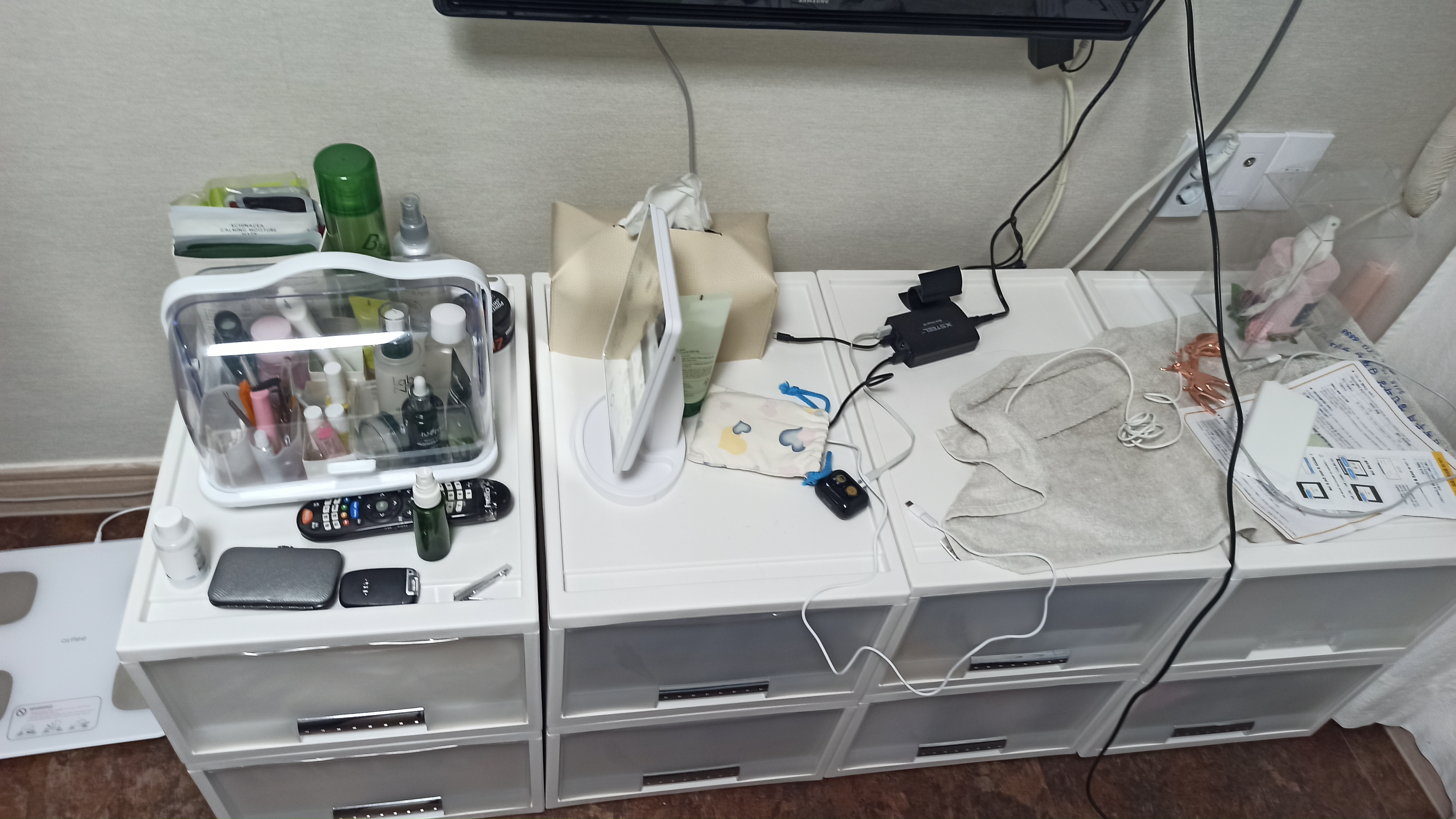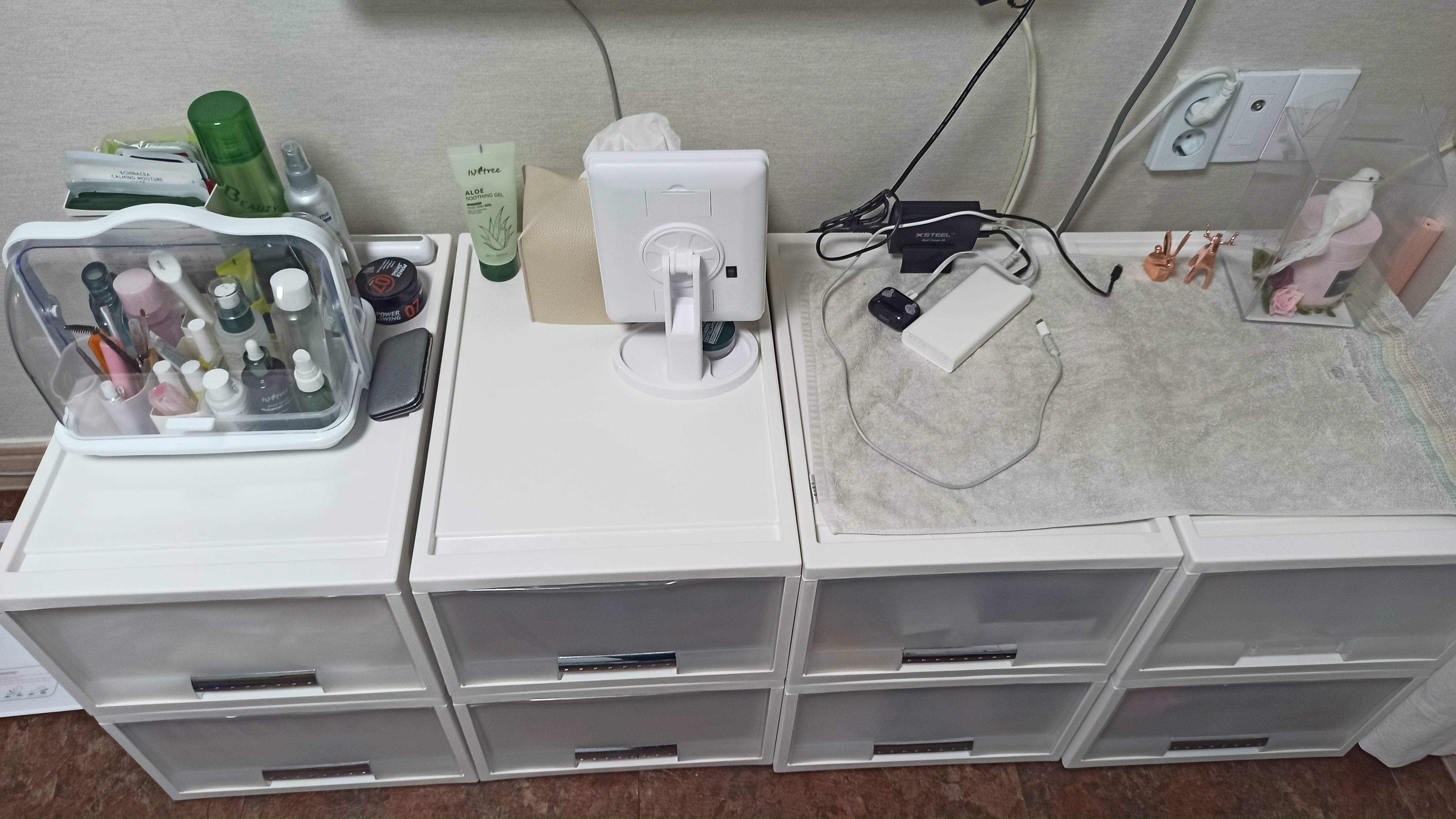 서랍장위에 정리했어요