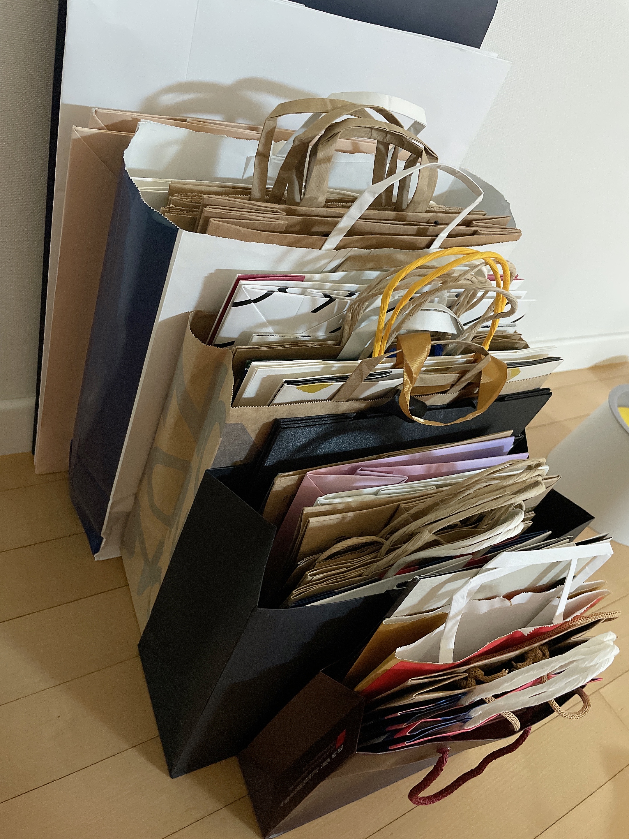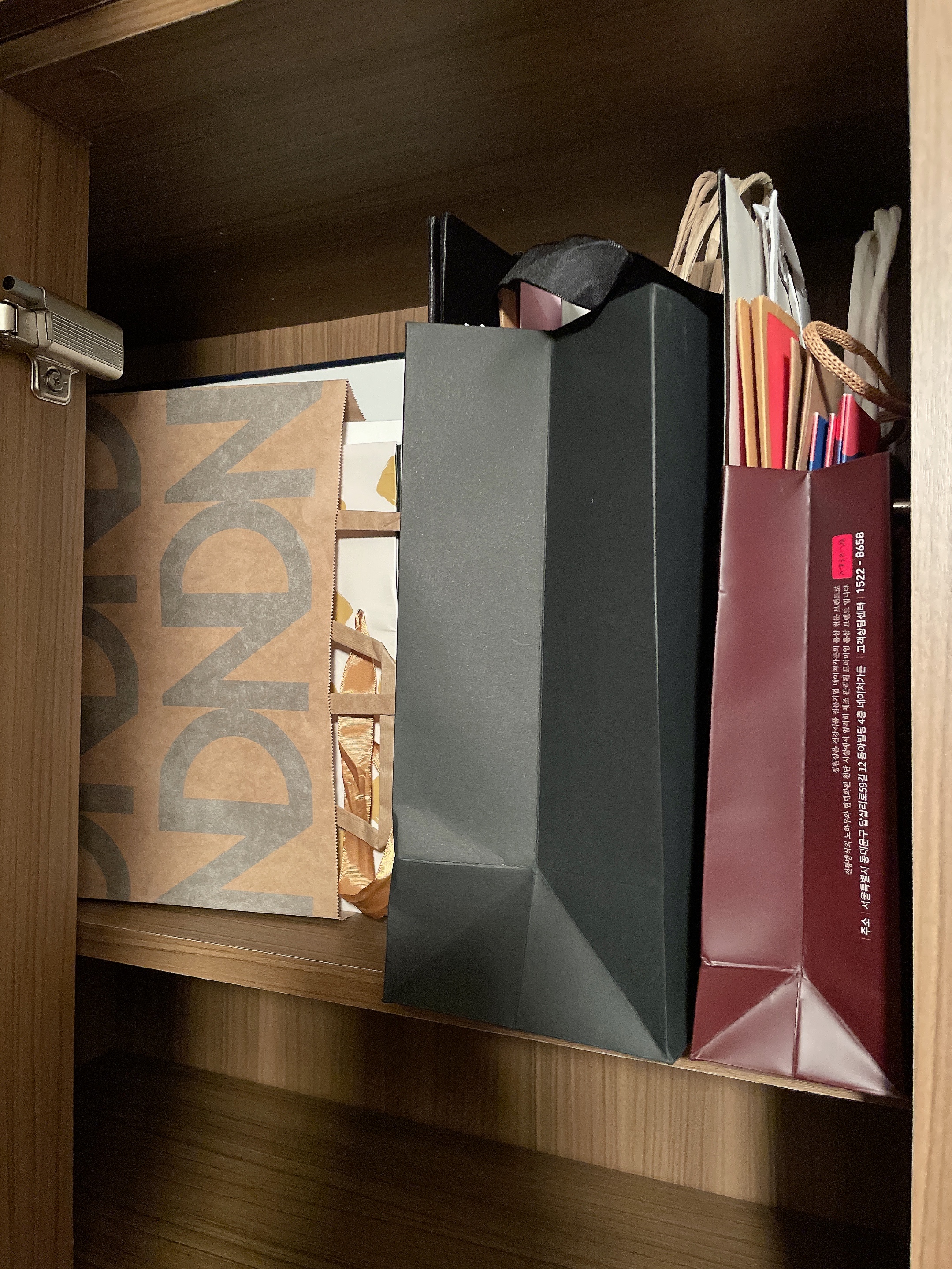 쇼핑백은 들어오기만 하고 나가질 않네요 :( 큰 쇼핑백에 한번에 넣어놓으니 쓸때마다 적당한 크기 찾느라 매번 엉망이 되서 이번에 제대로 정리해보려구요.