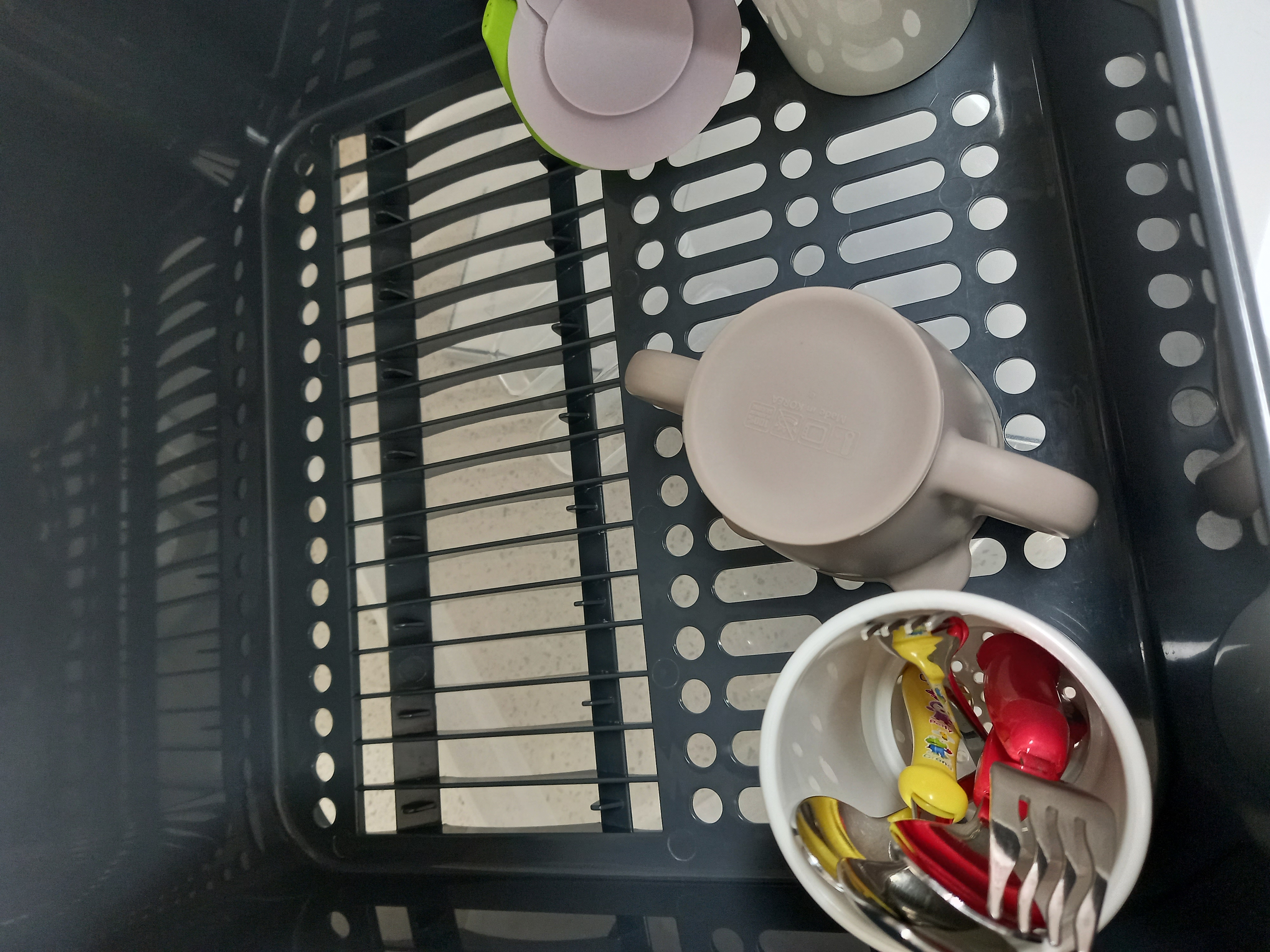 아이들 식기건조대 물때가 껴서 씻고 말렸더니 깨끗해요ㅎㅎ