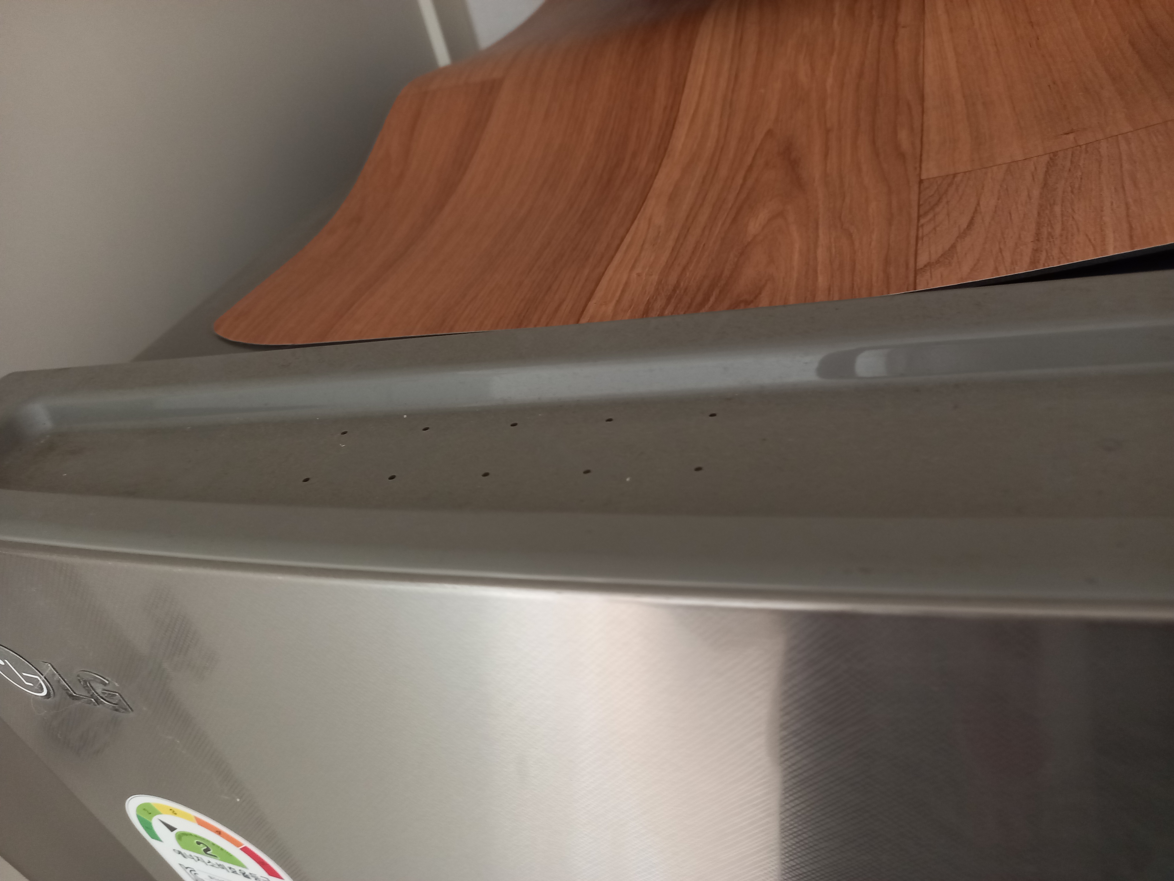 냉장고 위는 청소 잘 안하게 되더라구요 수납함 정리하면서 의자에 올라간김에 위에한번 닦았네요 위에 장판을 깔아두어서 뒤쪽엔 먼지가 없고 앞쪽에만 닦았어요ㅎ