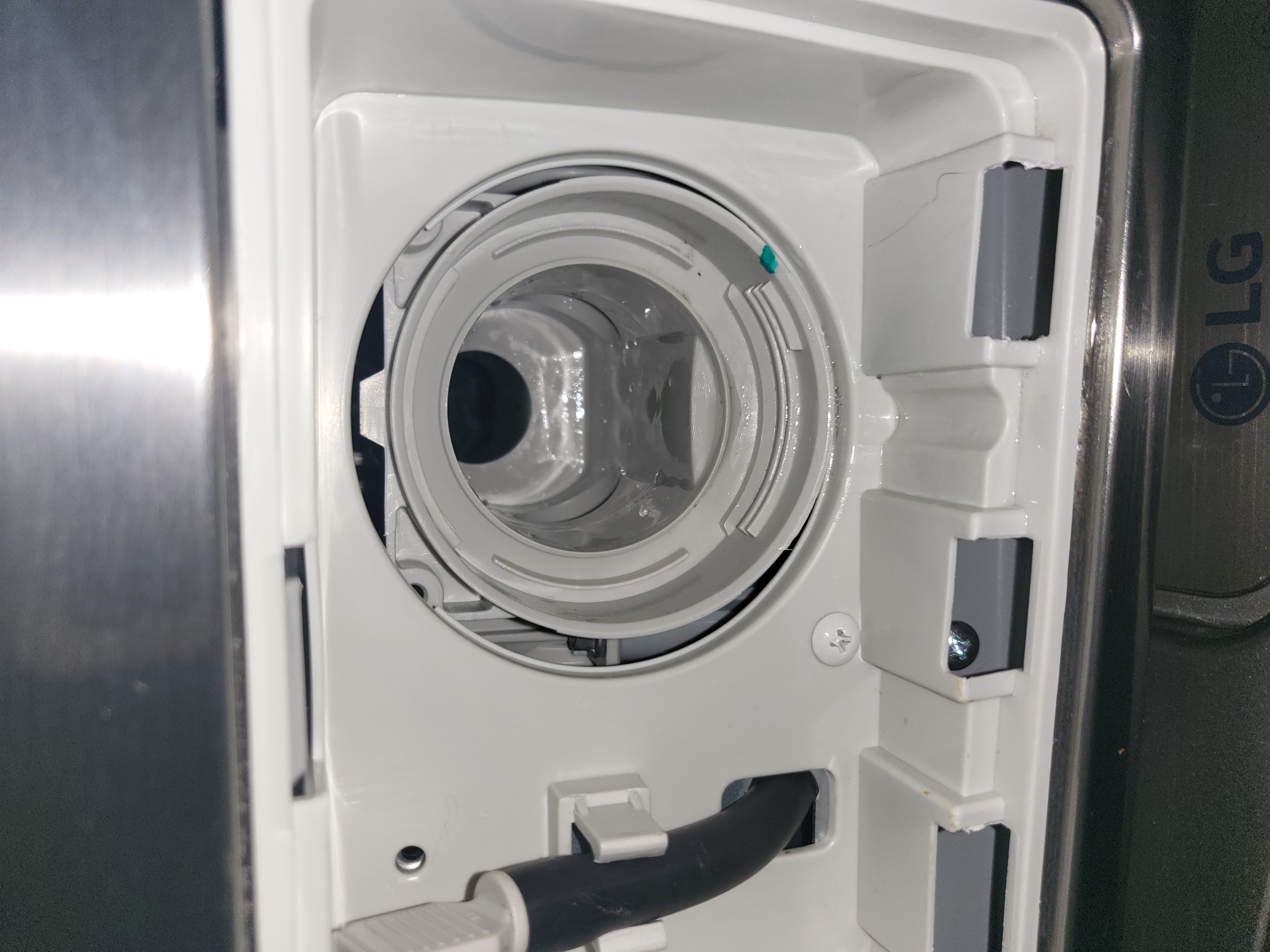 먼저, 세탁기에 남은 물을 호수를 통해 뺀 후,
